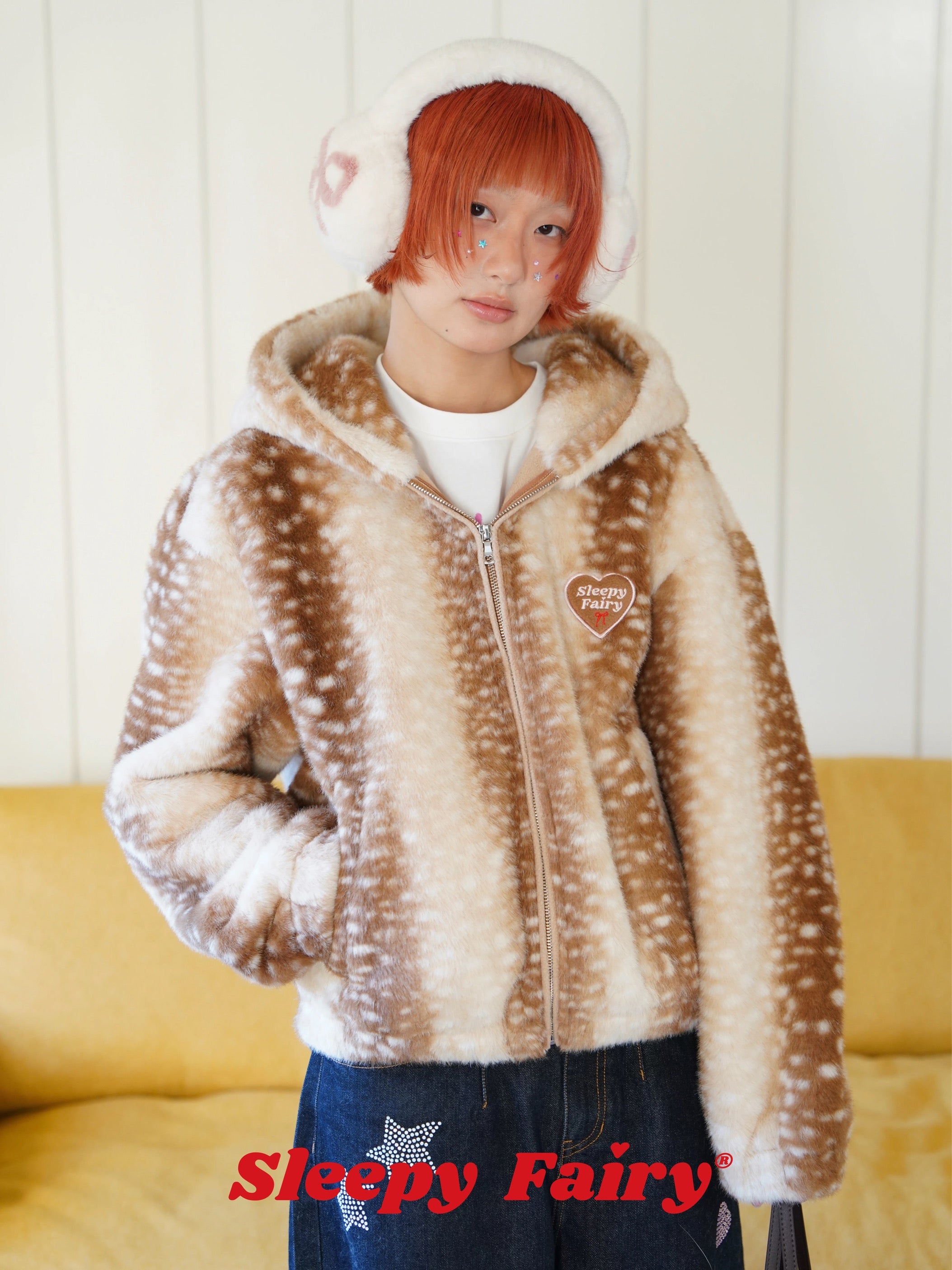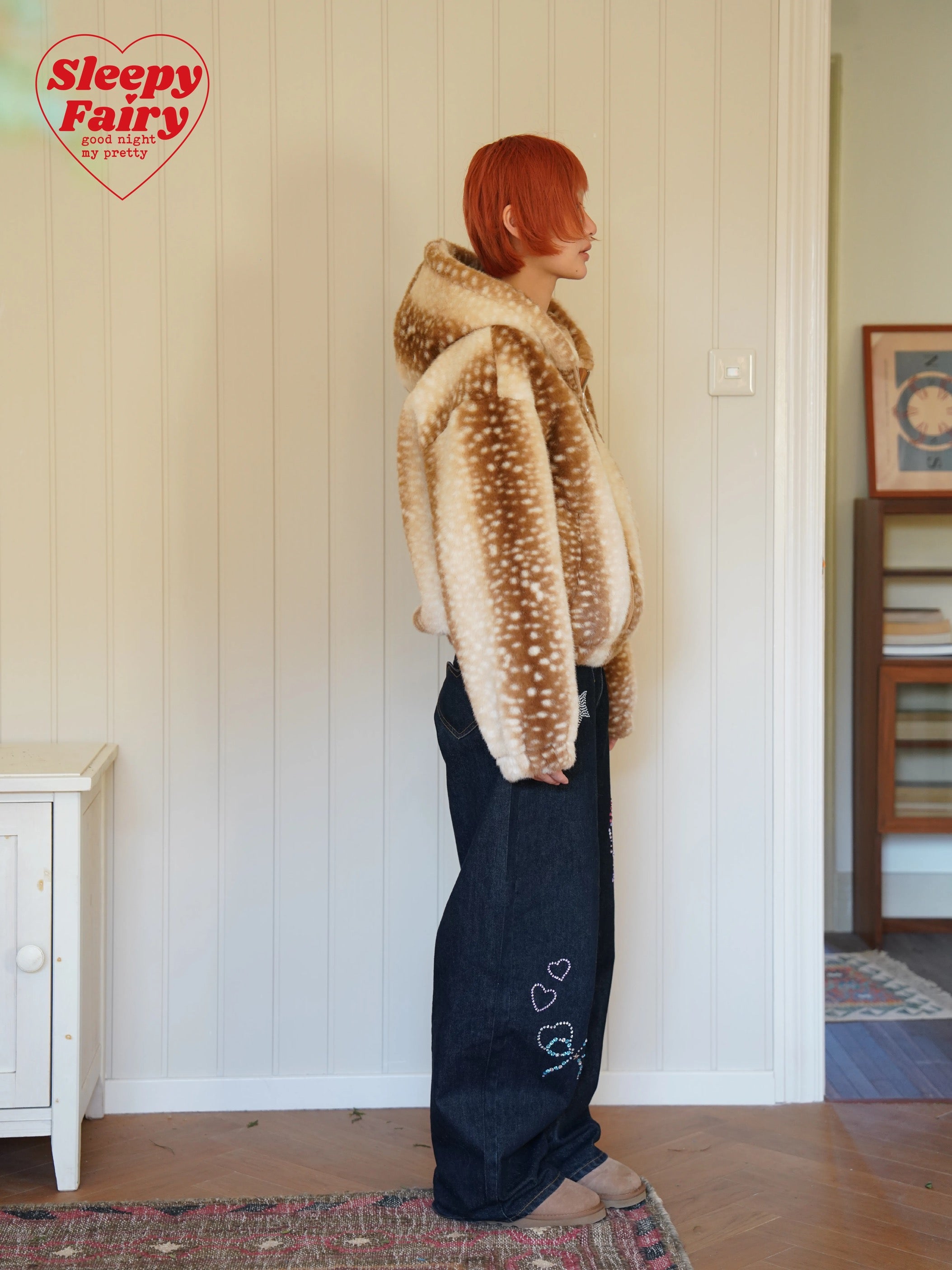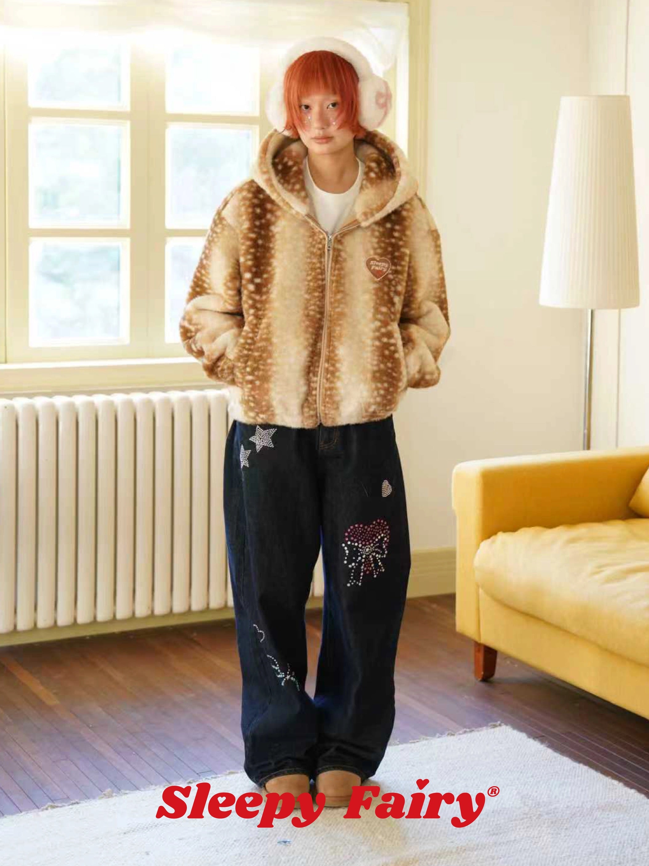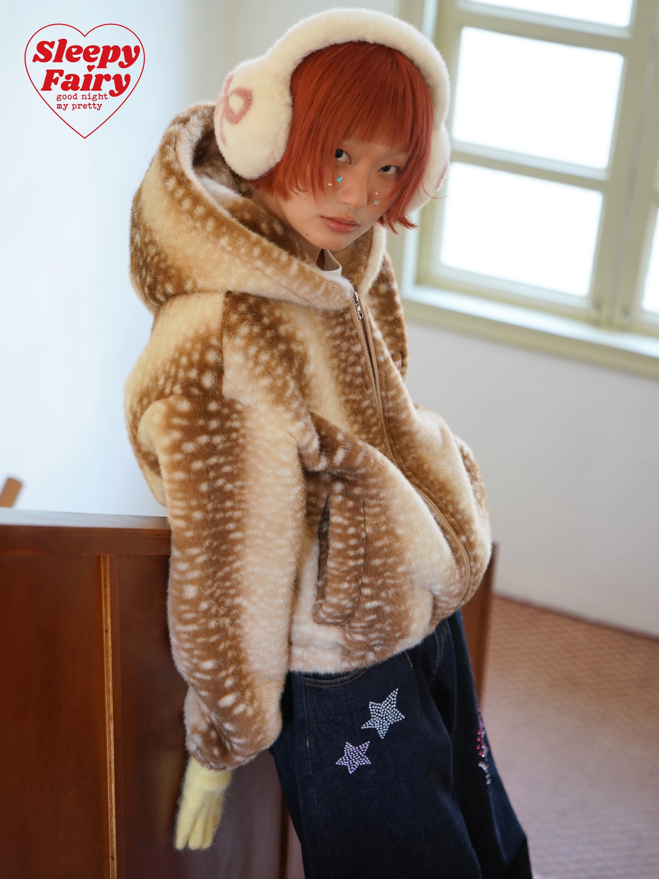 A cozy and adorable Sleepy Fairy jacket inspired by a gentle deer pattern. Made from ultra-soft faux fur, this jacket is warm, fluffy, and skin-friendly, perfect for autumn and winter layering.