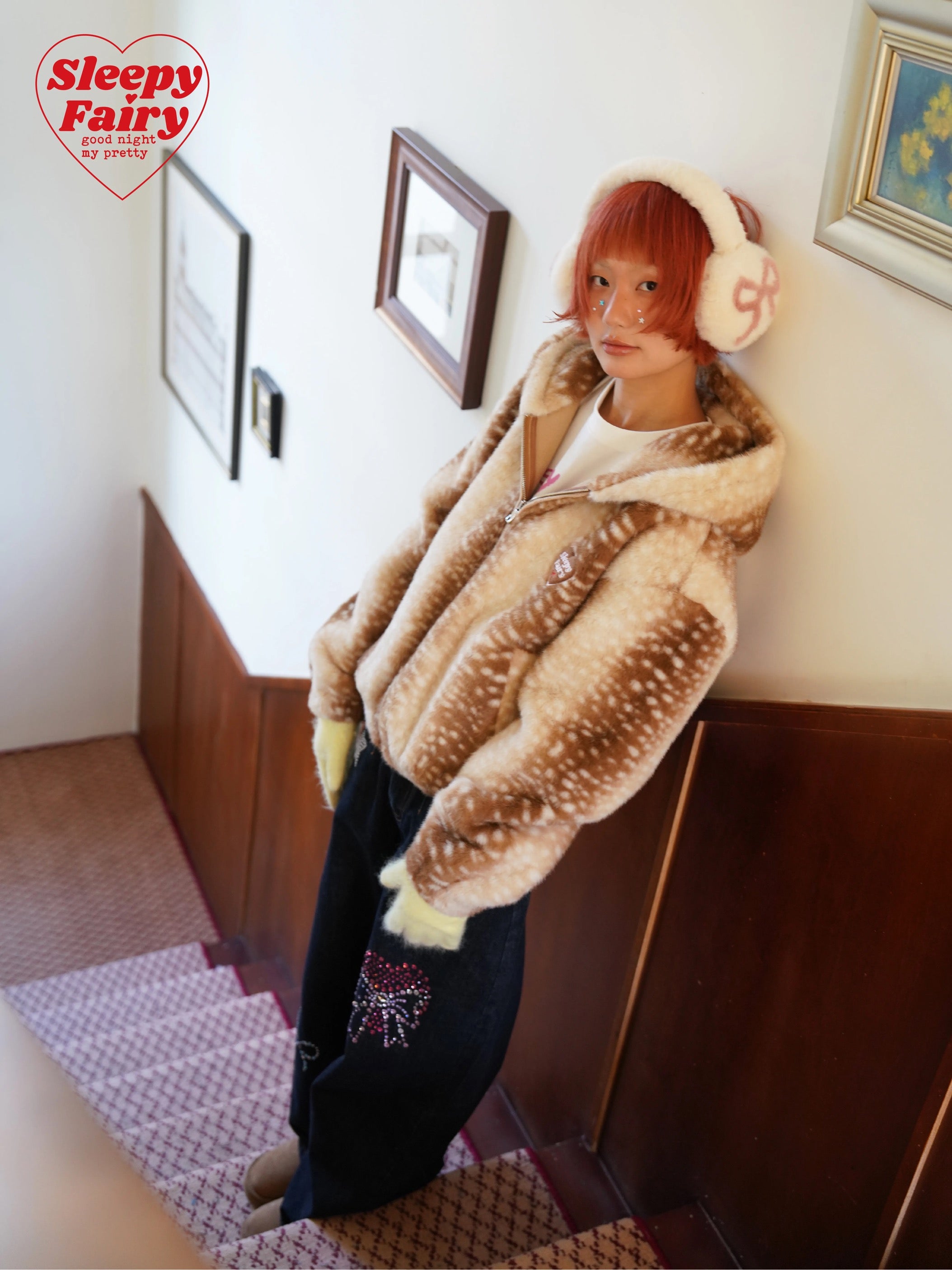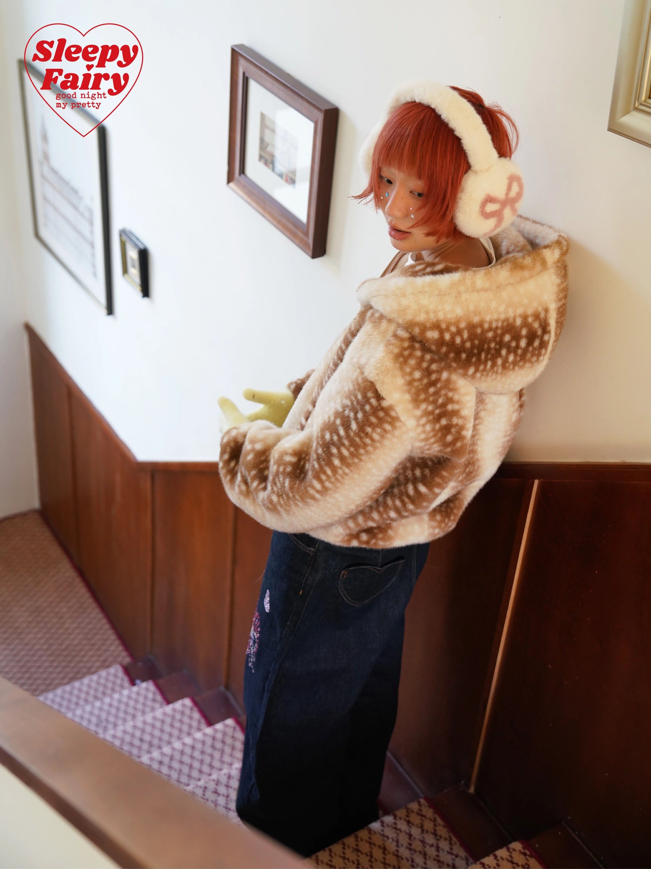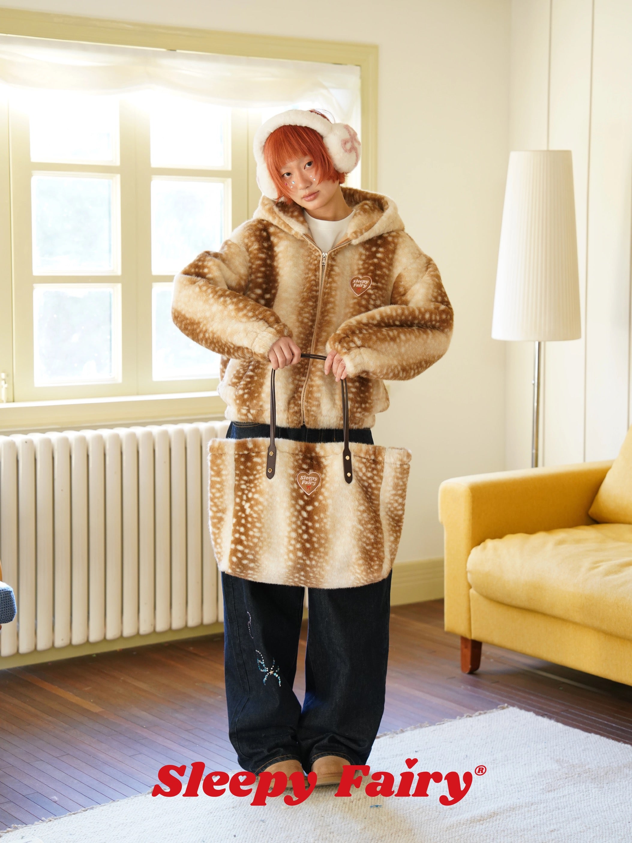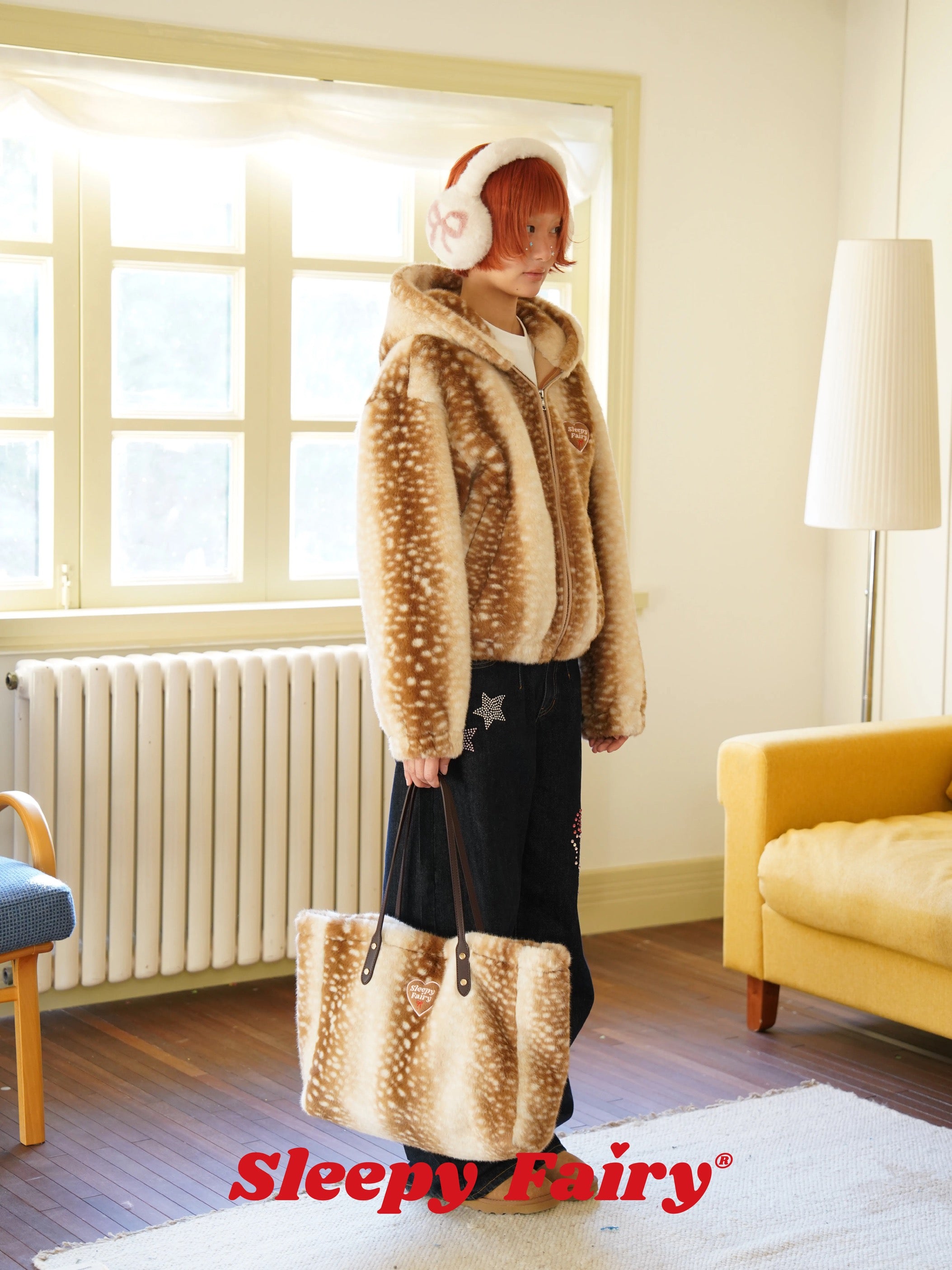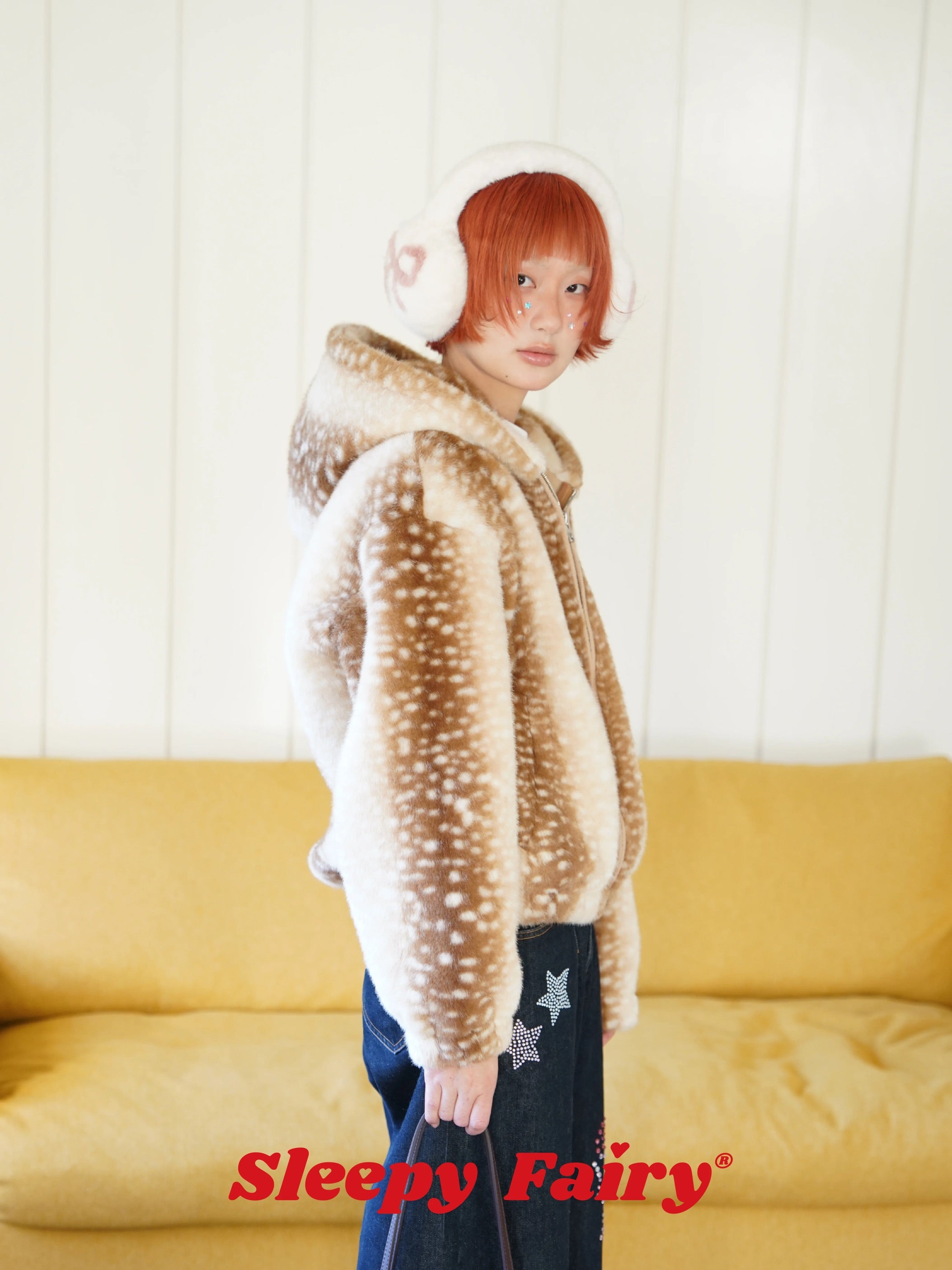 A cozy and adorable Sleepy Fairy jacket inspired by a gentle deer pattern. Made from ultra-soft faux fur, this jacket is warm, fluffy, and skin-friendly, perfect for autumn and winter layering.