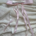 Add a touch of dreamy charm with this bif pastel pink satin ribbon clip.
