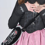 The magnetic clasp ensures both security and style, while the heavy-duty metal chain strap adds a raw, edgy finish. A signature piece that blends sweetness and gothic style, perfect for gothic Lolita, punk, or dark romantic looks.
