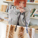 A soft and cozy Sleepy Fairy tote bag featuring a gentle deer-inspired faux fur pattern. Designed to be both cute and practical, this tote adds a warm, dreamy touch to everyday outfits.