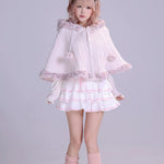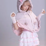 A playful mix of pastel pink leopard faux fur, soft cable-knit sleeves, and kitty ears tied with satin bows — it’s a vintage back to 2000s Shibuya gyaru style blended with modern coquette-core charm