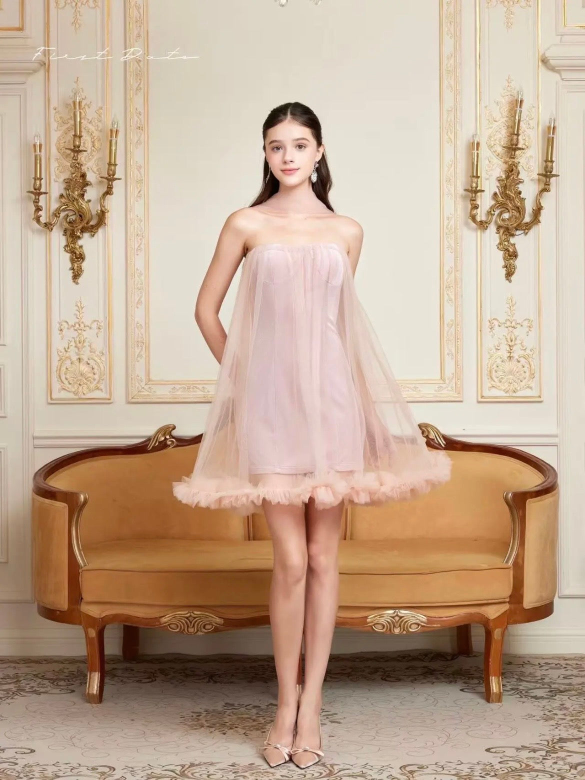 First Date NYC Floral Days Blush Tulle Mini Dress
