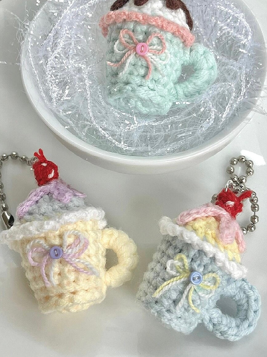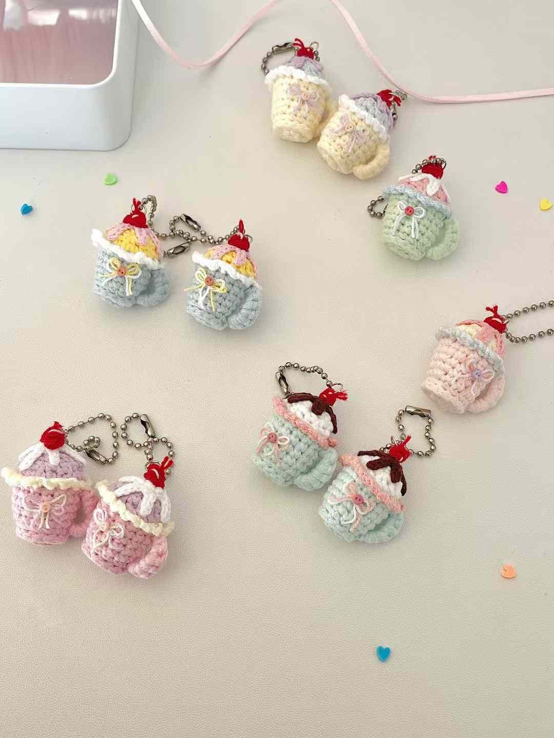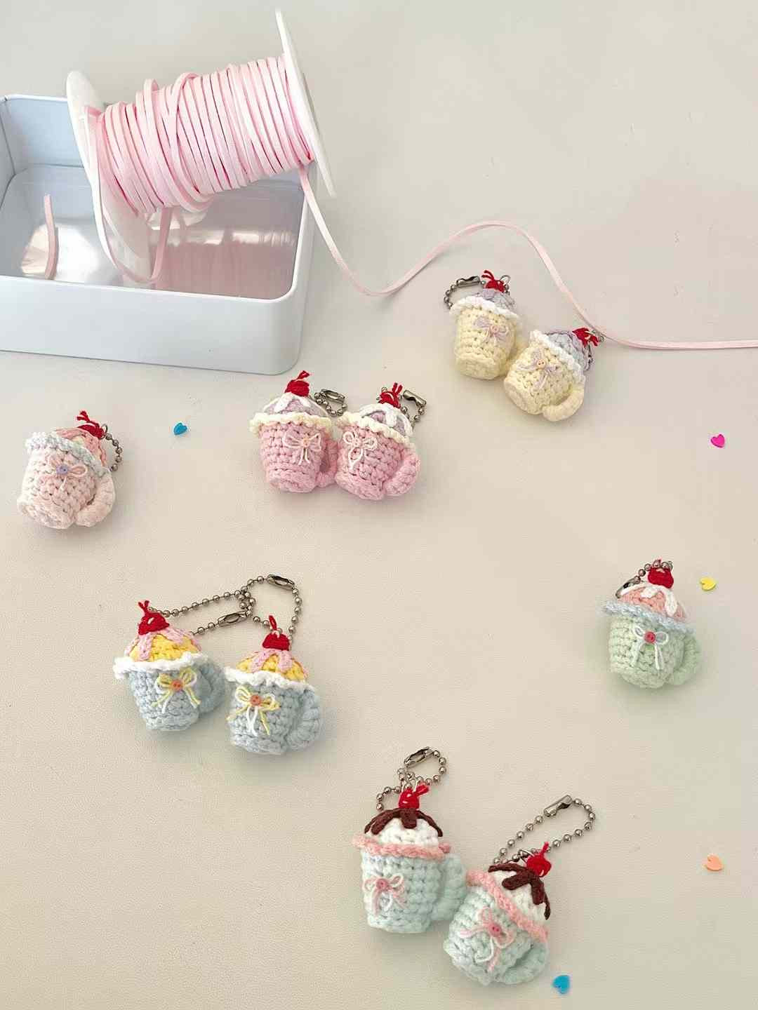 [Hand Knitted] Cherry Sundae Bites Cups Phone or Bag Charm