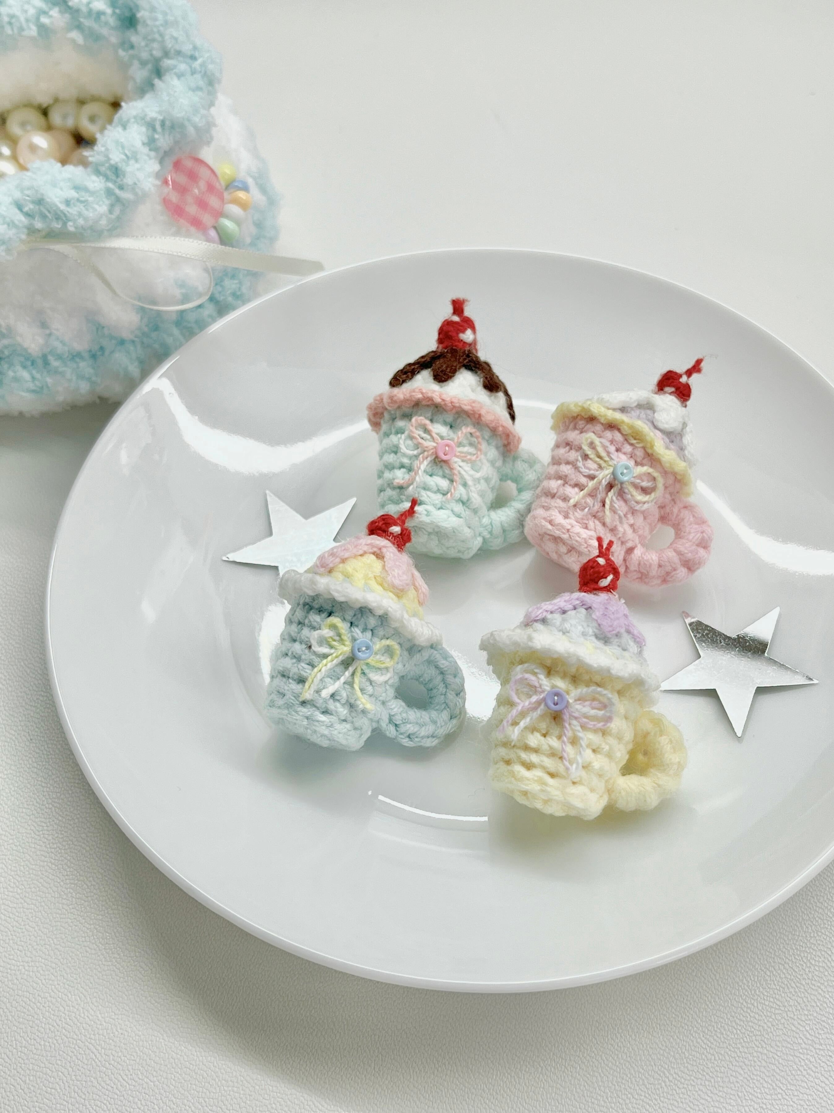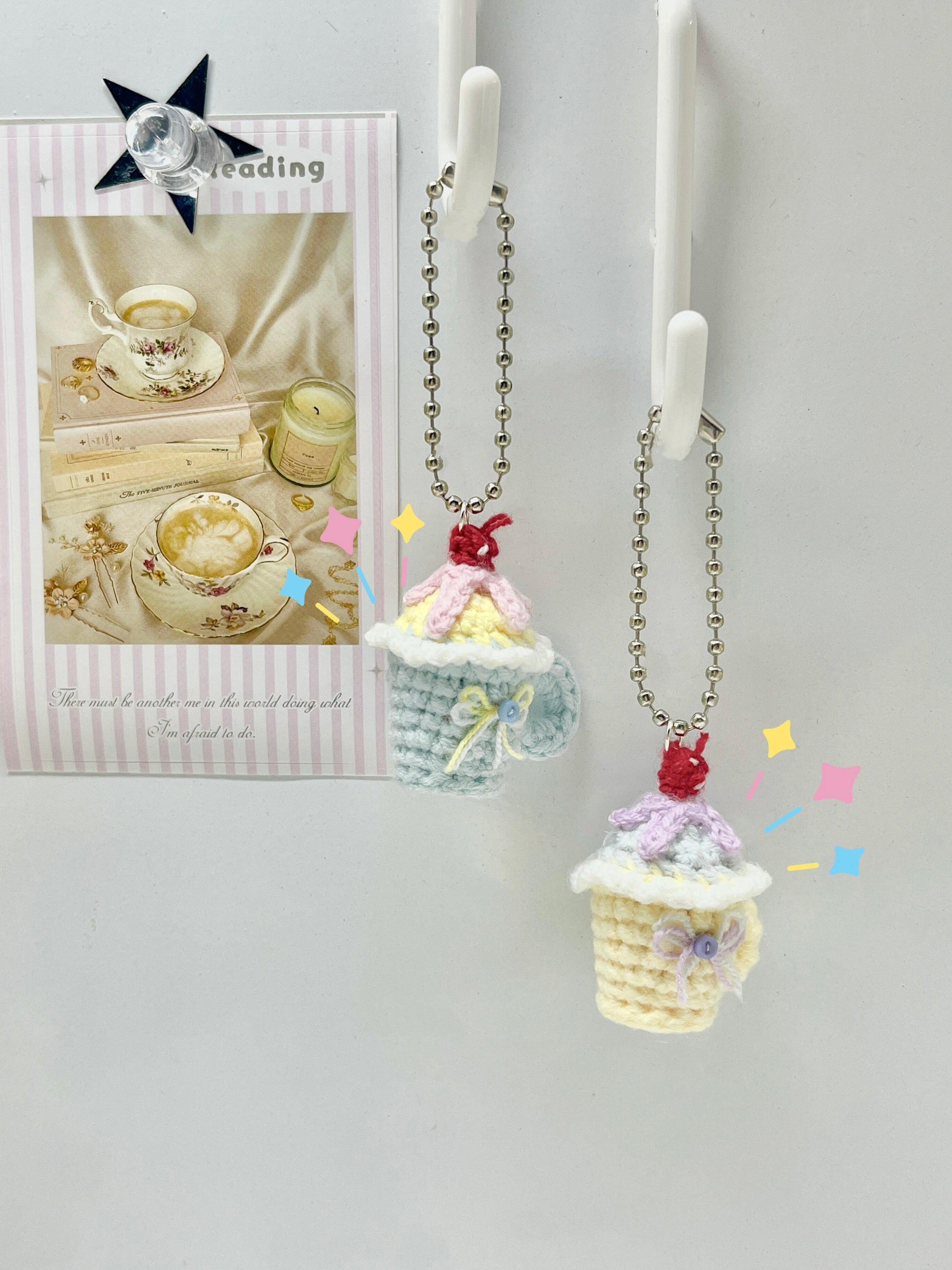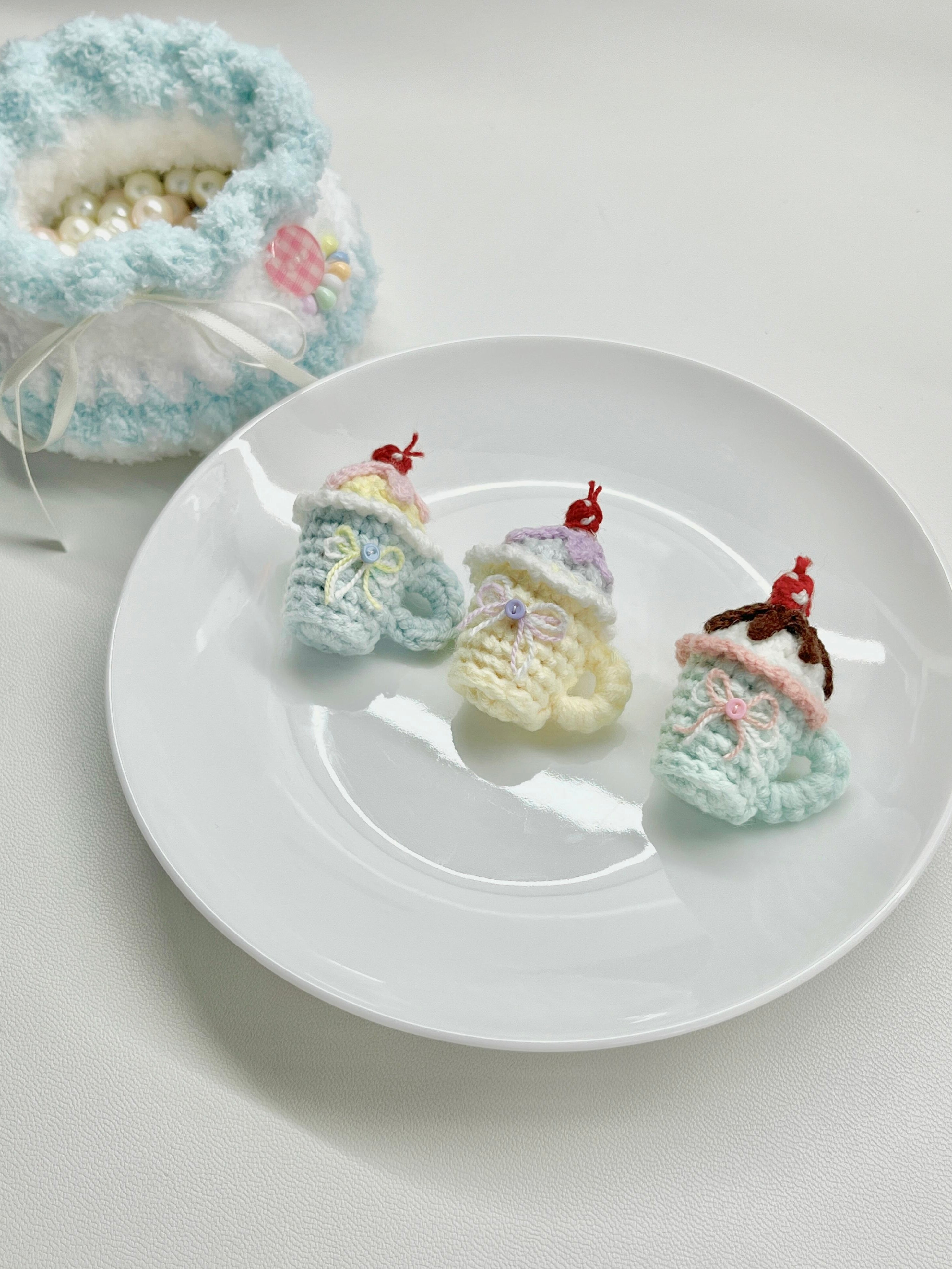 [Hand Knitted] Cherry Sundae Bites Cups Phone or Bag Charm