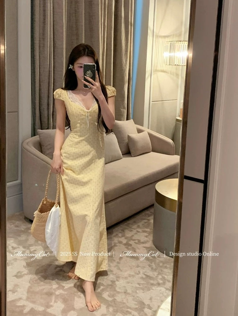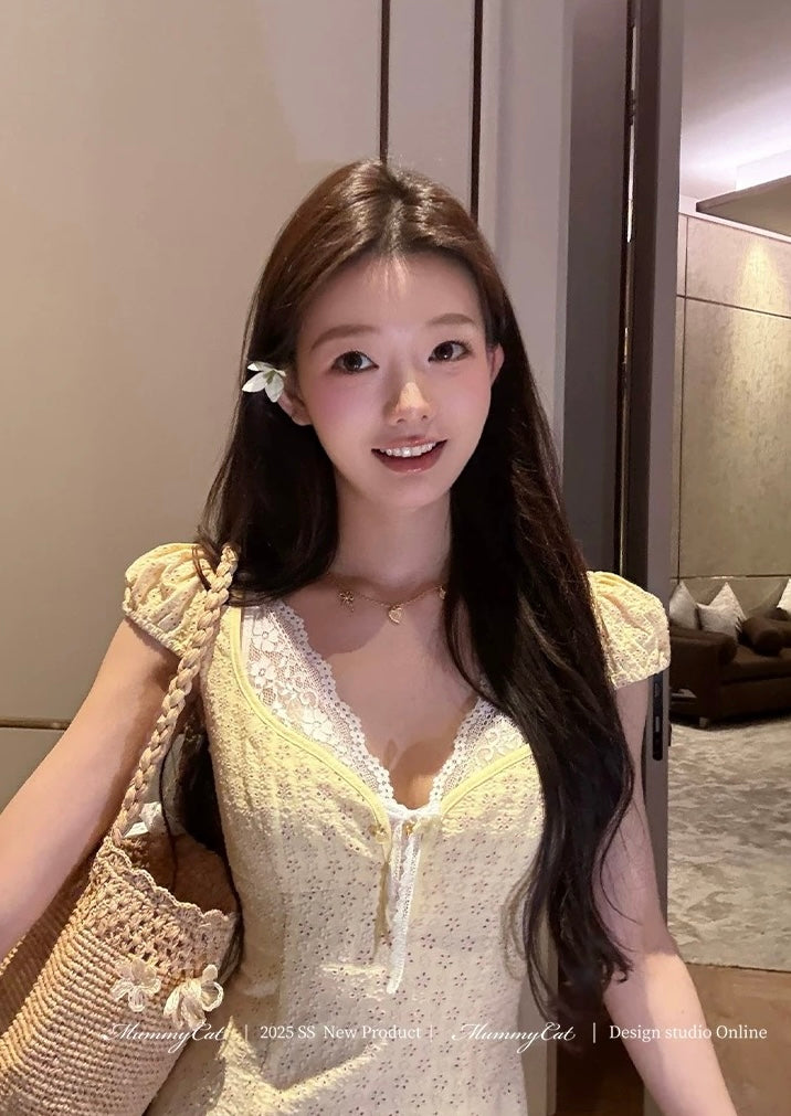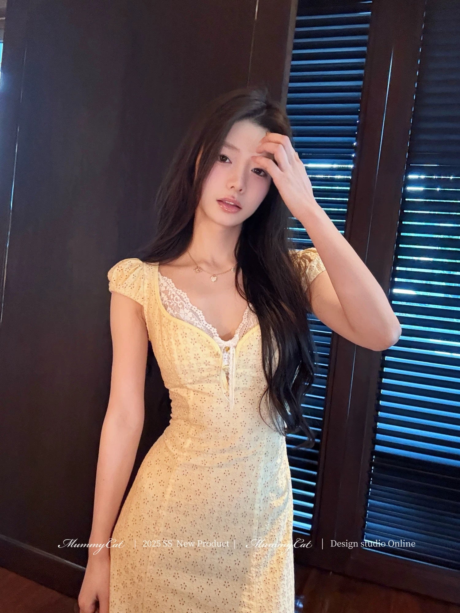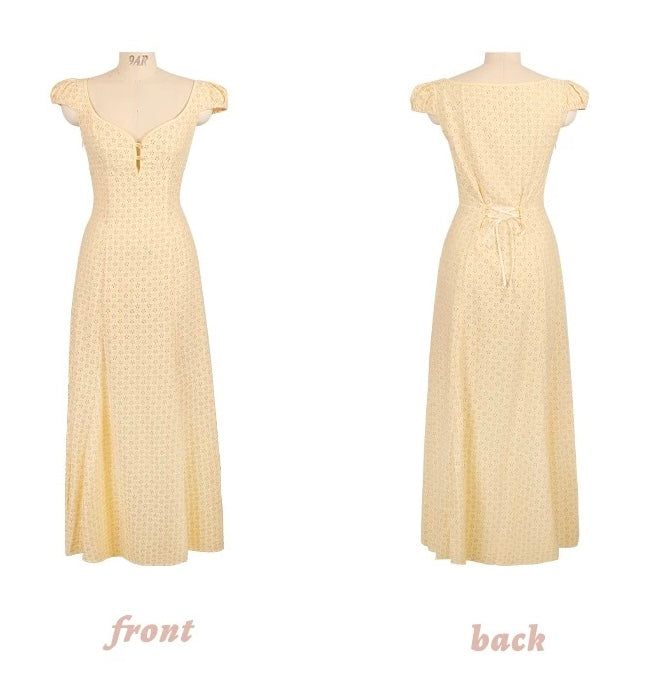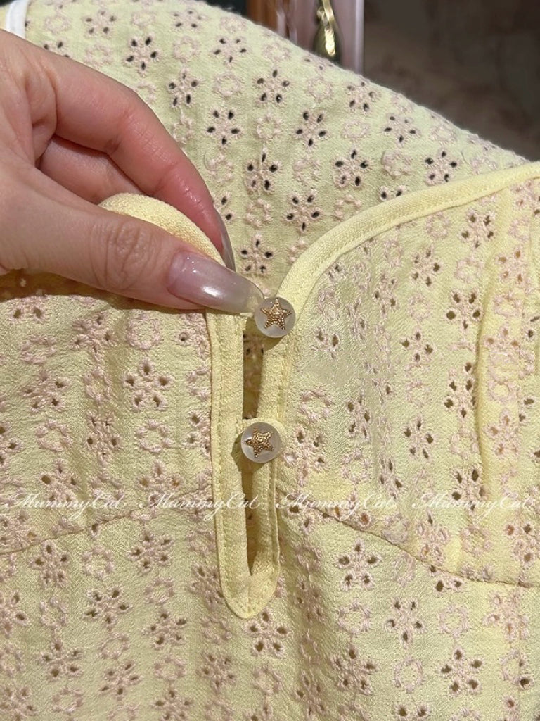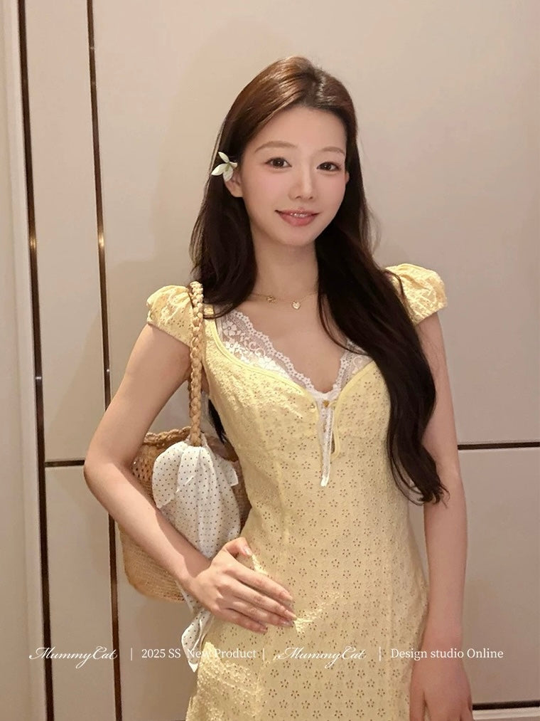 Let your holiday begin in a touch of romance with the Hawaii Blossom Kiss Dress. Relaxed yet stunning, this dreamy yellow piece captures the feeling of sunlit mornings and slow afternoons in a seaside resort. The soft floral fabric, delicate lace neckline, and flowing silhouette bring effortless charm, while the tie-back waist adds a gentle touch of shape.