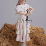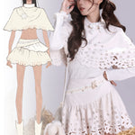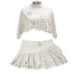- Style: Two-piece set (cape + skirt) with laser-cut floral design
