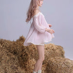 • Style: Off-shoulder babydoll mini dress with airy volume