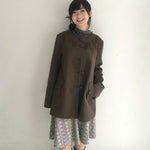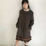 A sweet vintage touch wrapped in autumn warmth — this mid-length mori-kei style coat features a deep coffee-brown autumn color.