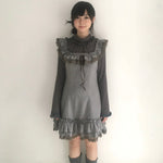 A gentle echo of forest autumn days — this mori-kei style dress features a structured gray ribbed wool fabric that balances vintage charm and modern softness.