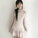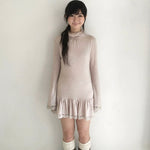 SicAstra Autumn Pastel Pink Turtleneck Long Sleeves Dress