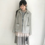 Its soft herringbone texture and neat tailoring bring quiet elegance to daily mori-kei looks, easily paired with lace skirts or knit dresses.