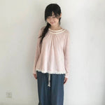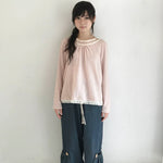 Soft as early spring light — this mori-kei inspired top combines a gentle pink-and-white stripe knit with a layered inner detail 2 in 1 design, creating a cozy yet refined silhouette.