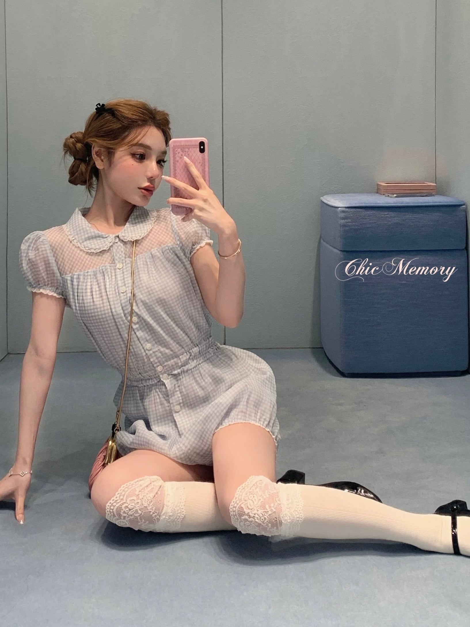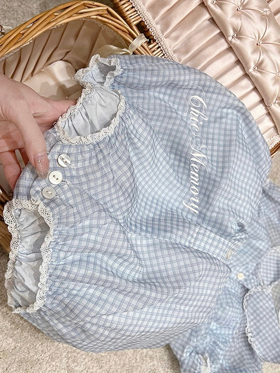 Crafted from 100% cloud cotton voile with a delicate blue and white gingham print, this romper is light as air, breathable, and super comfortable for warm weather. The fabric has a gentle structure, giving it a puffy, soft silhouette that holds its shape beautifully without feeling stiff.