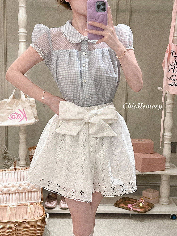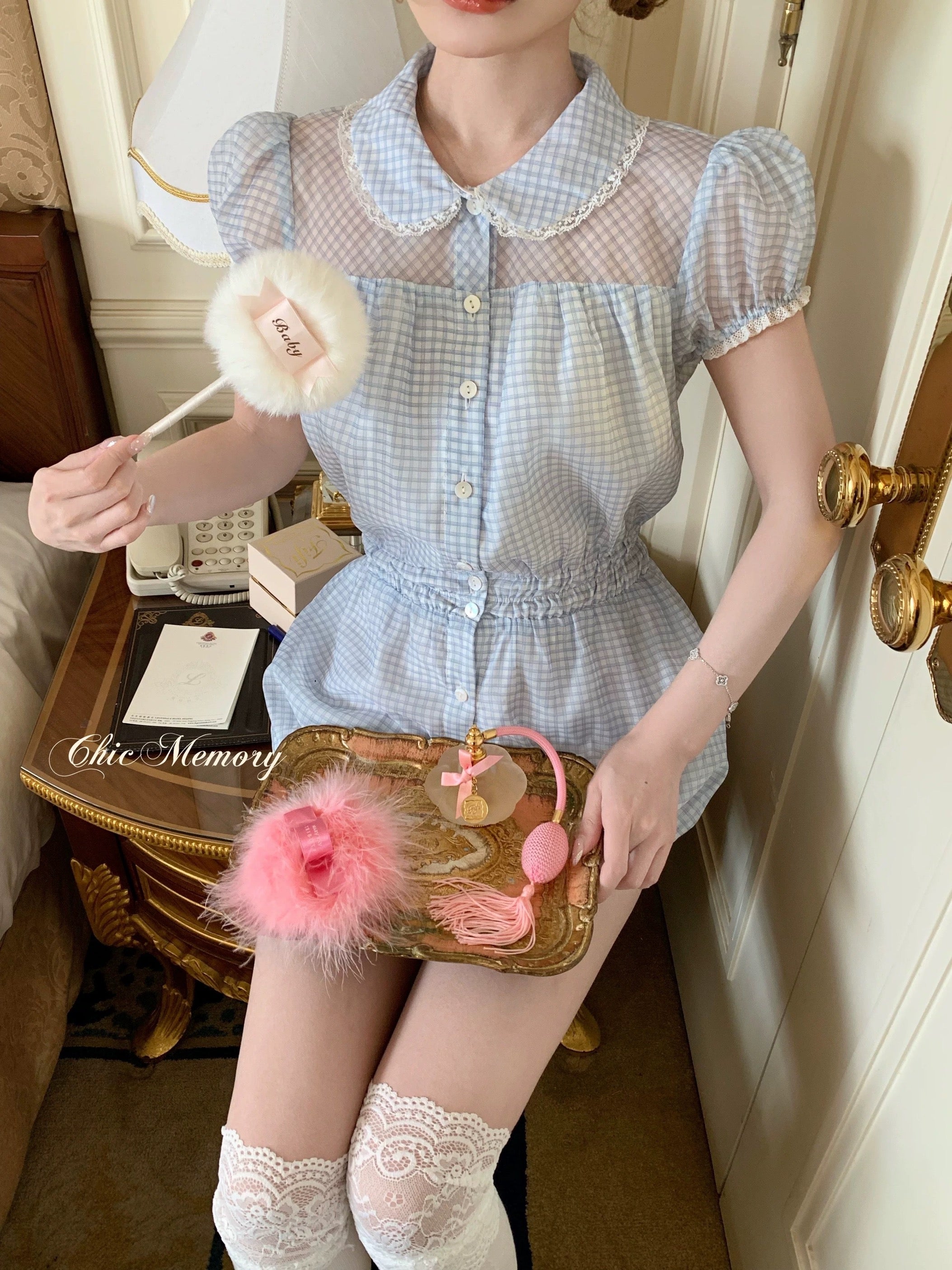 Peter Pan collar & puff sleeves frame the shoulders perfectly, enhancing that delicate coquette look.