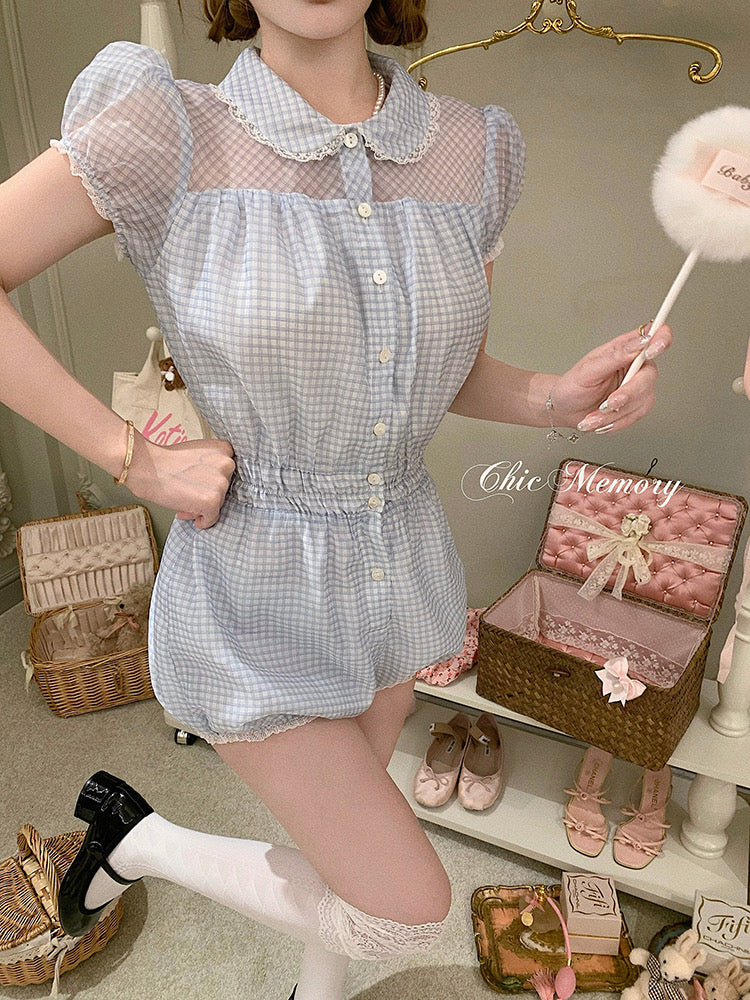 [10th Anniversary Sale] Coquette Babydoll Gingham romper jumpsuit