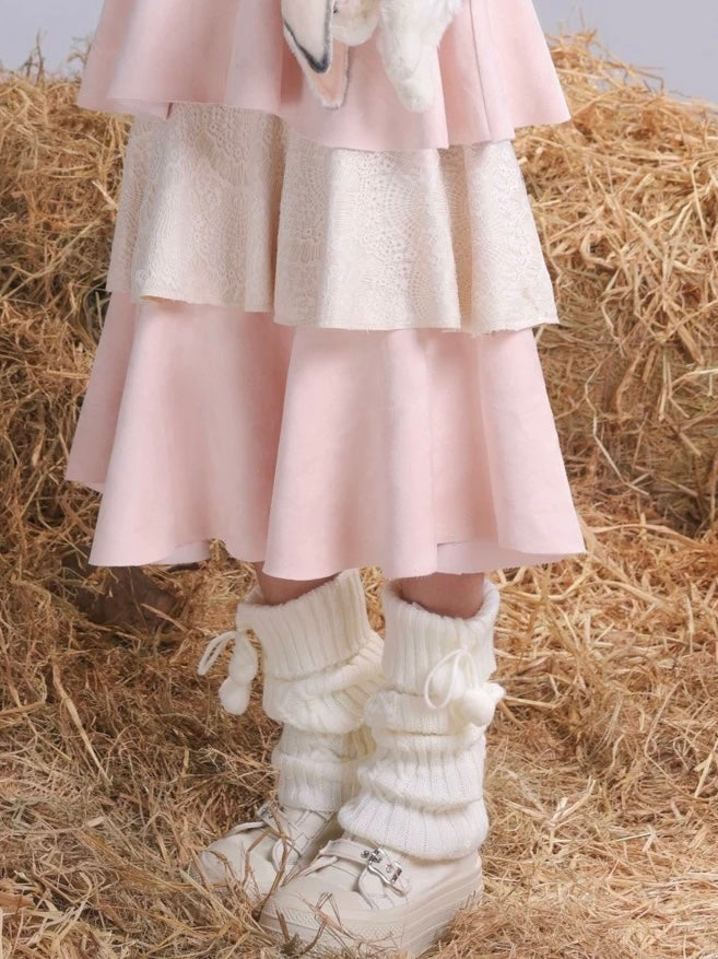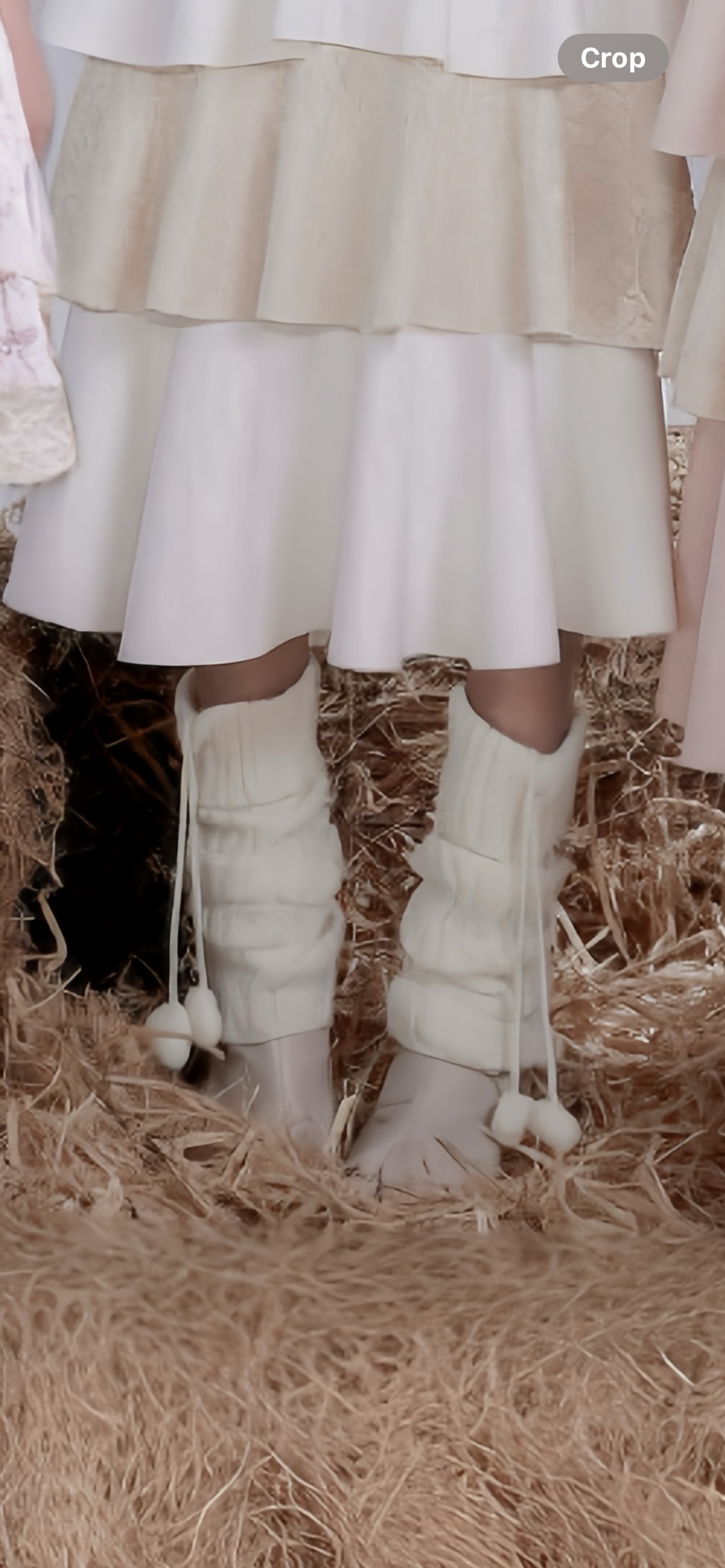 Wrap your autumn days in soft, coquette-core charm. These ivory-white knit leg warmers are made from 100% polyester, designed with a cozy ribbed texture and finished with delicate ribbon ties and fluffy pom-poms. Perfect for layering over your favorite Mary Janes, ballet flats, or sneakers, they bring a sweet vanilla girl vibe to every outfit.