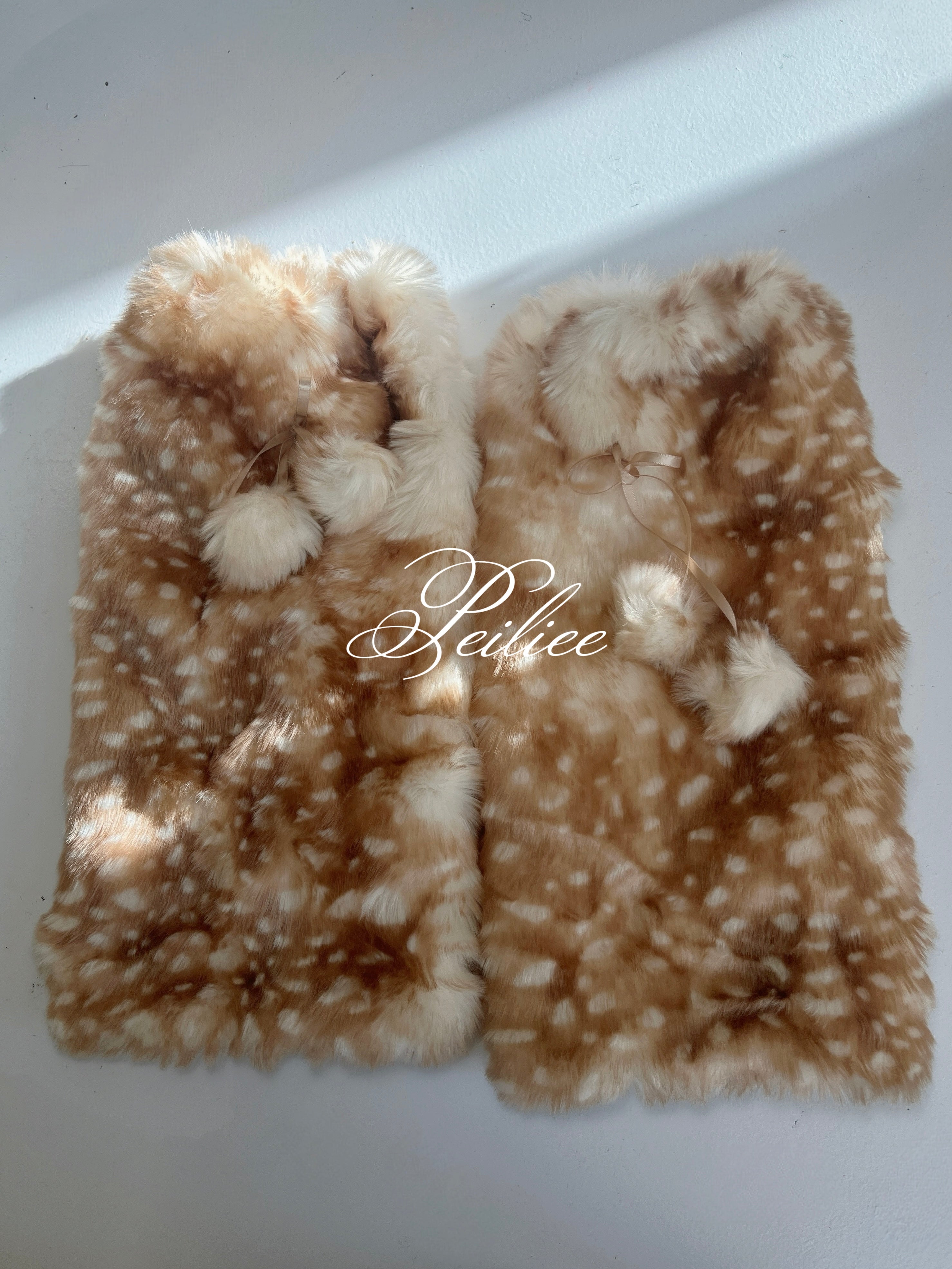 Designed for Fawn core and deer core girls and lovers of coquette core and cottage core aesthetics, these fluffy leg warmers feature a faux fur deer pattern and delicate pompom ties, bringing a dreamy fairytale touch to any outfit. It’s elastic size on the top (as shown in the try on video) so it will stay on your legs while moving 💕