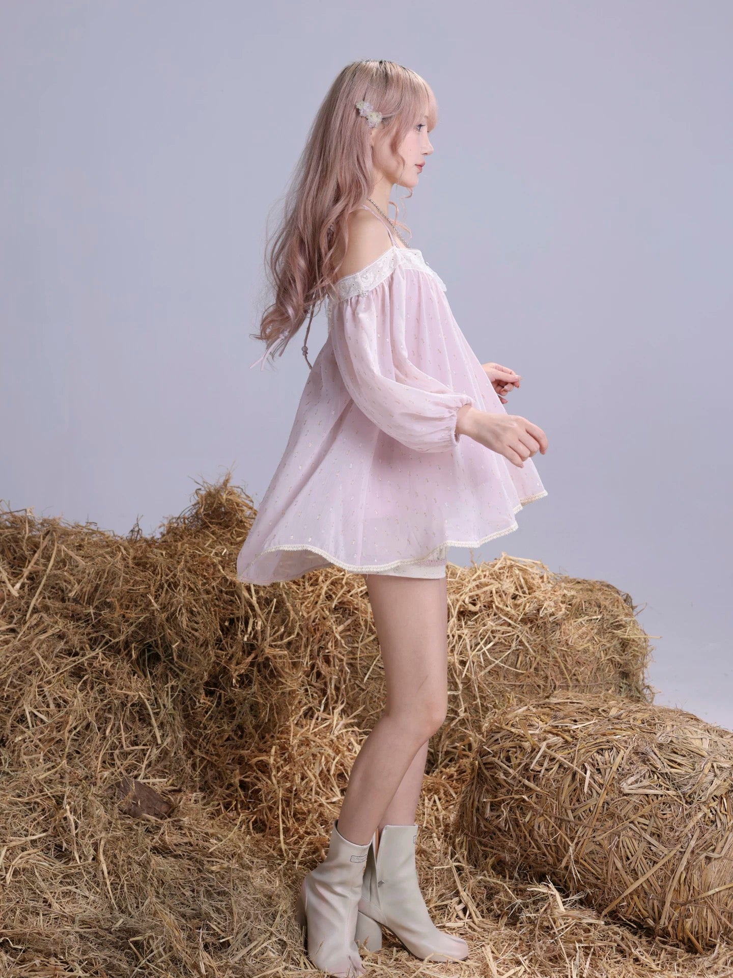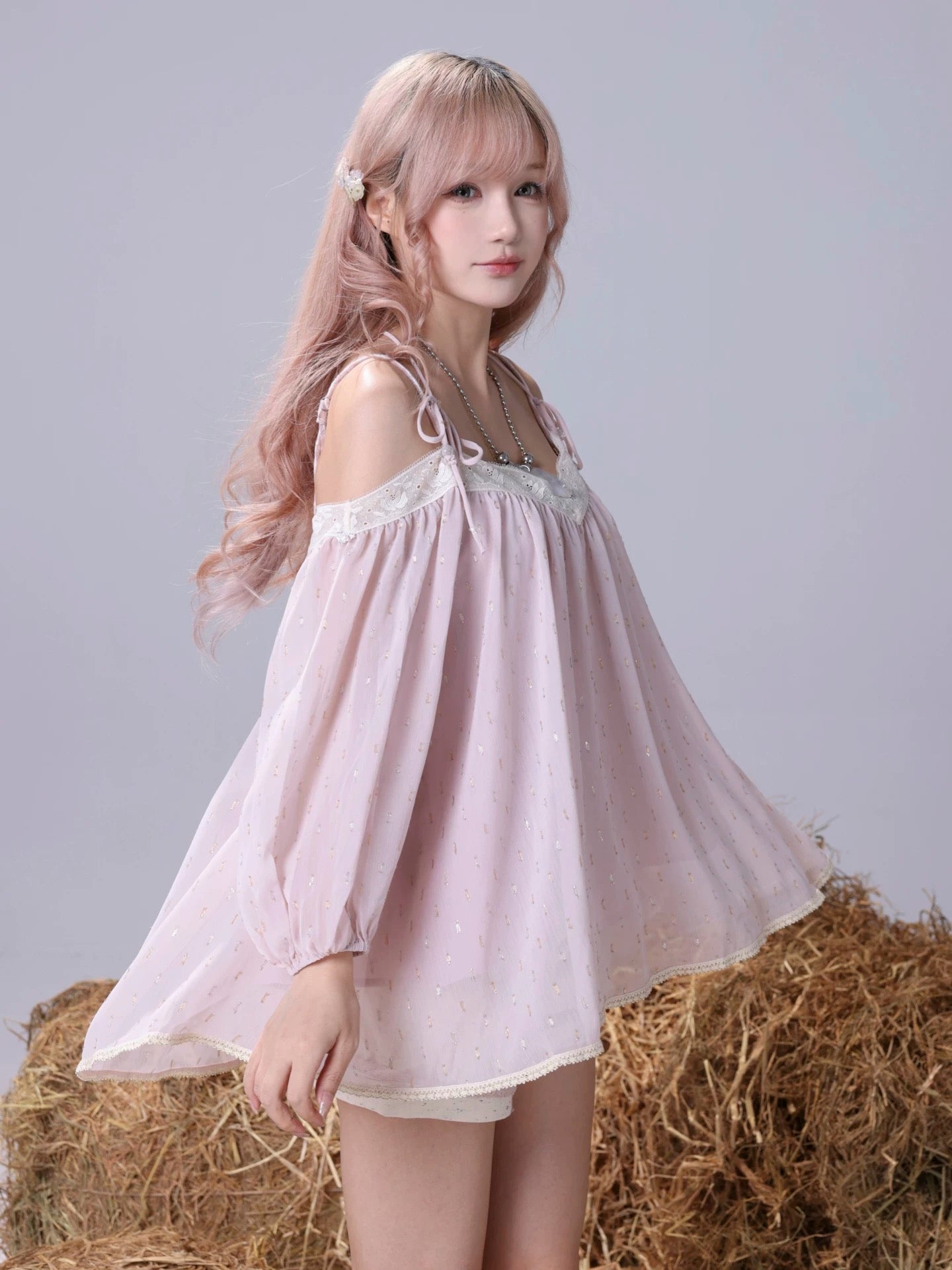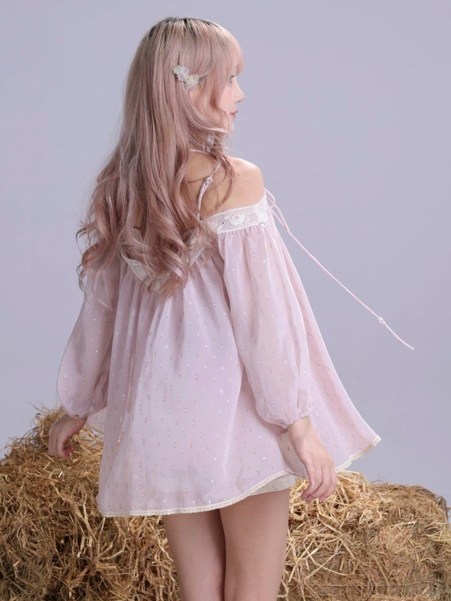 • Style: Off-shoulder babydoll mini dress with airy volume