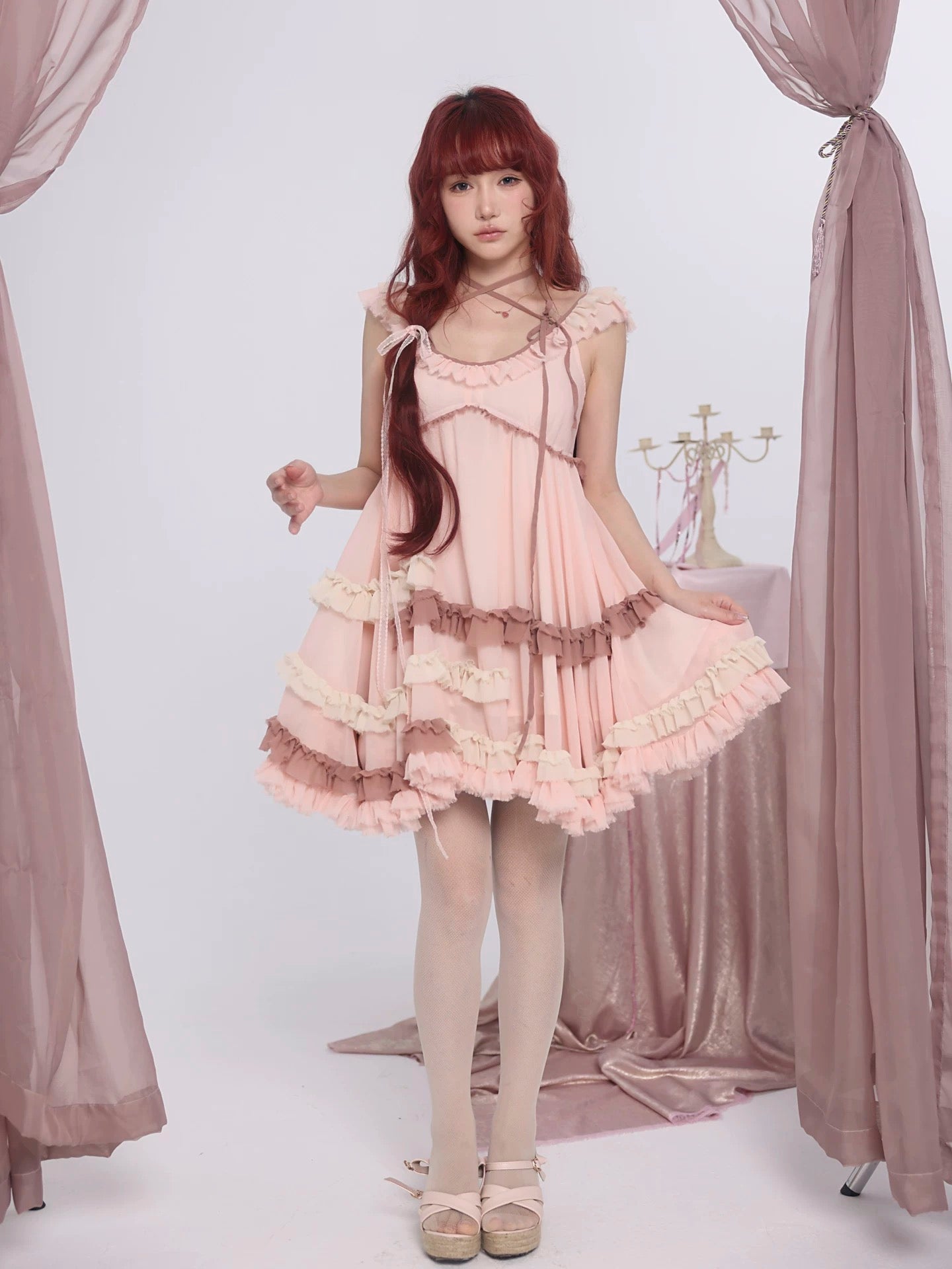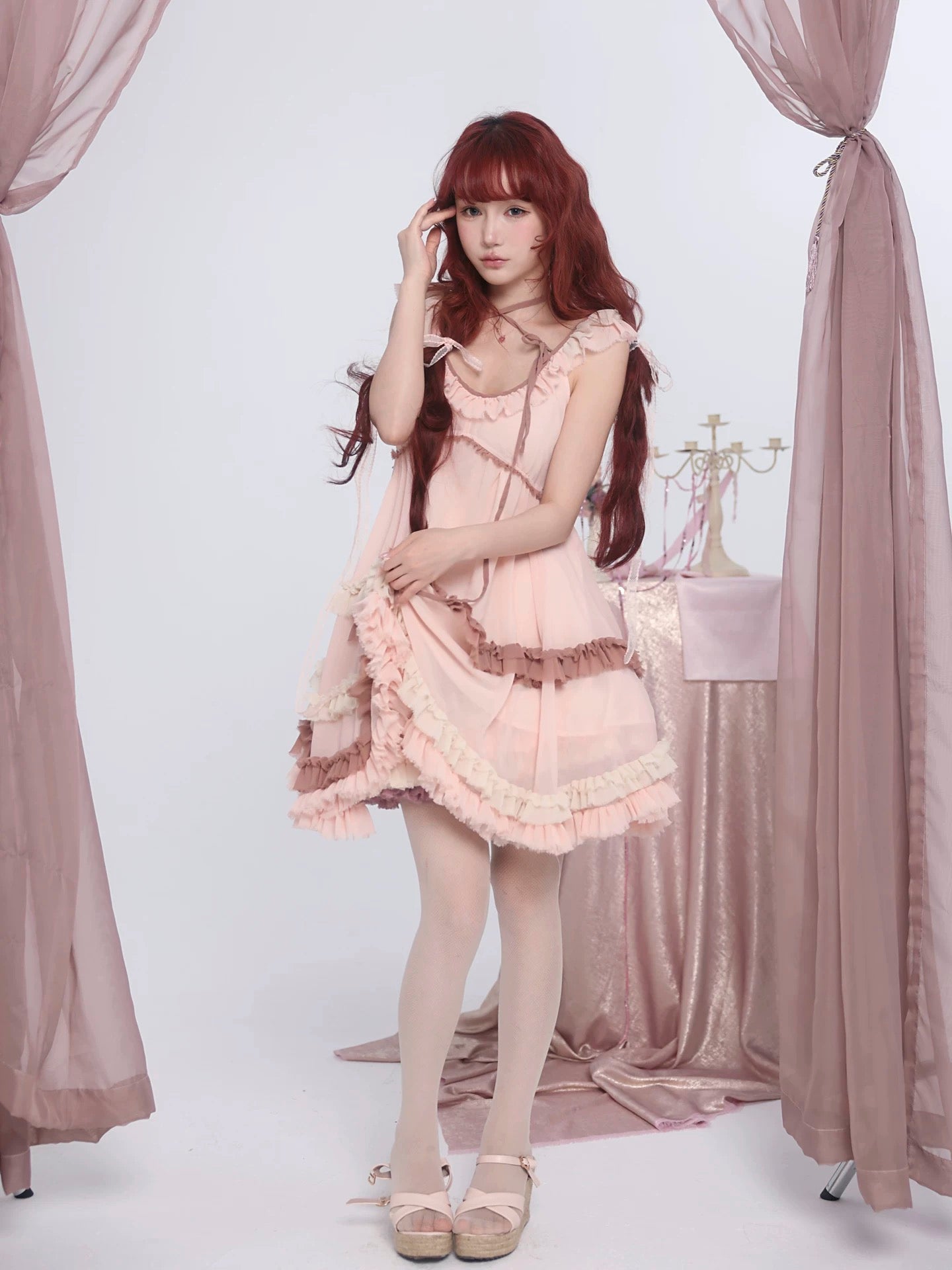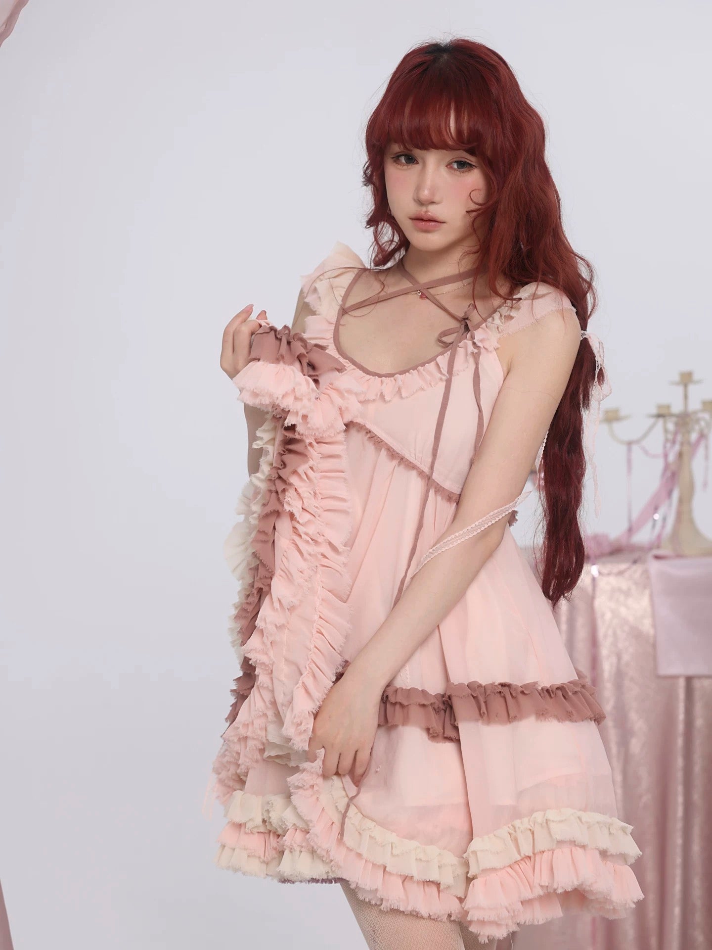 [Sweden Warehouse Rose Island] Rosy Blush Ruffle Mini Dress