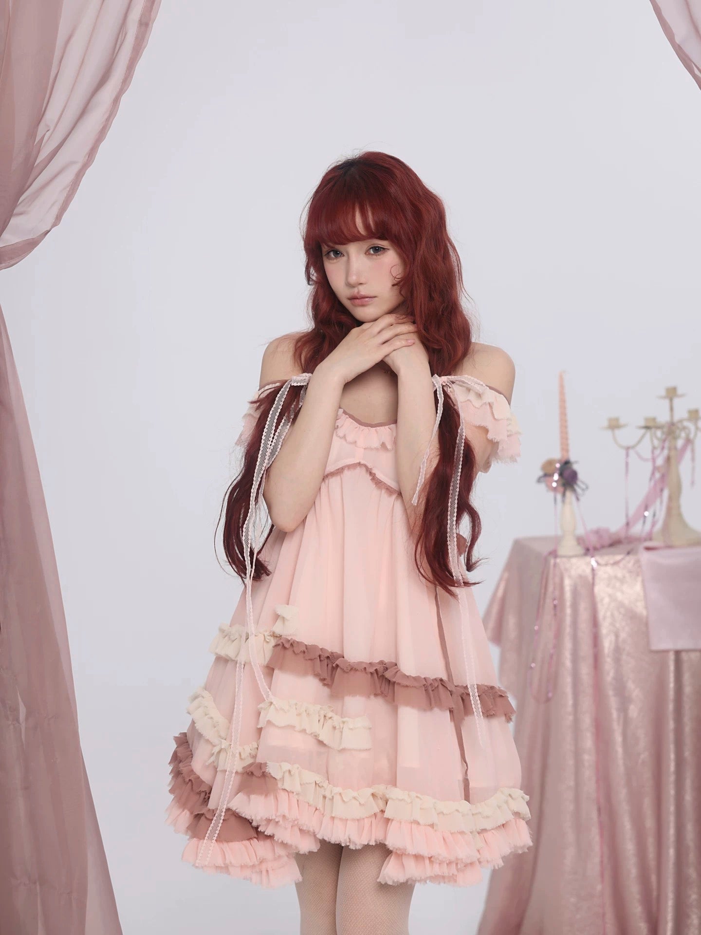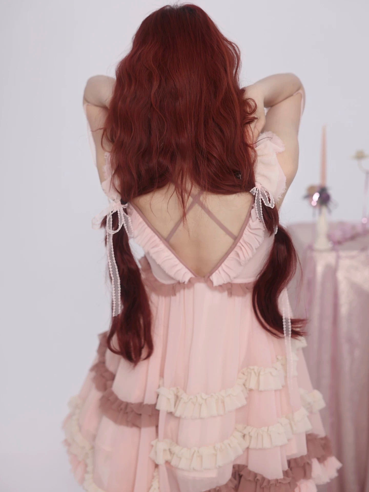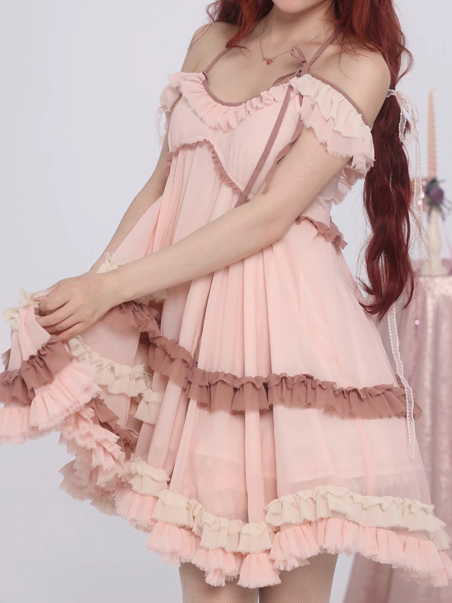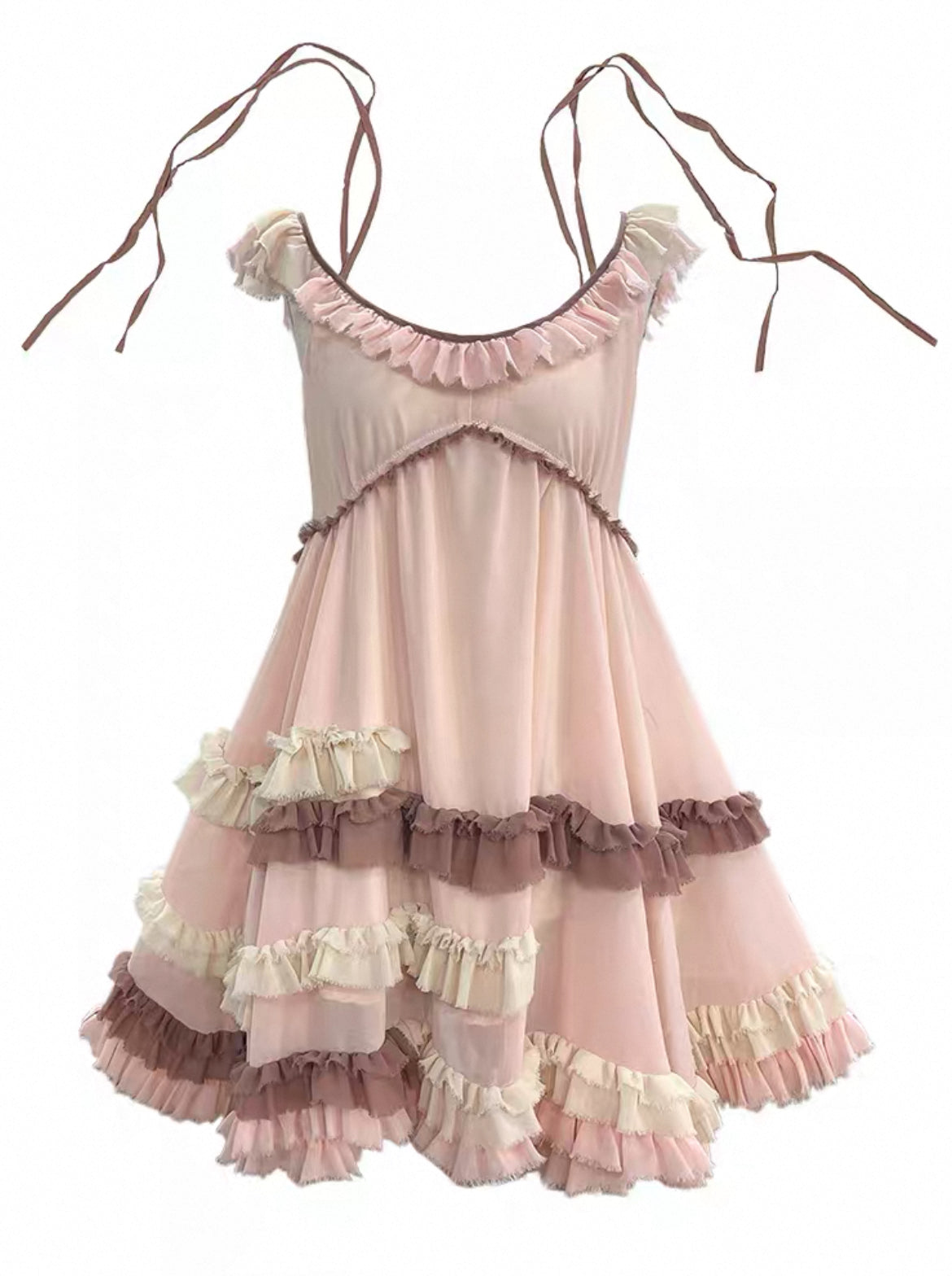 [Sweden Warehouse Rose Island] Rosy Blush Ruffle Mini Dress