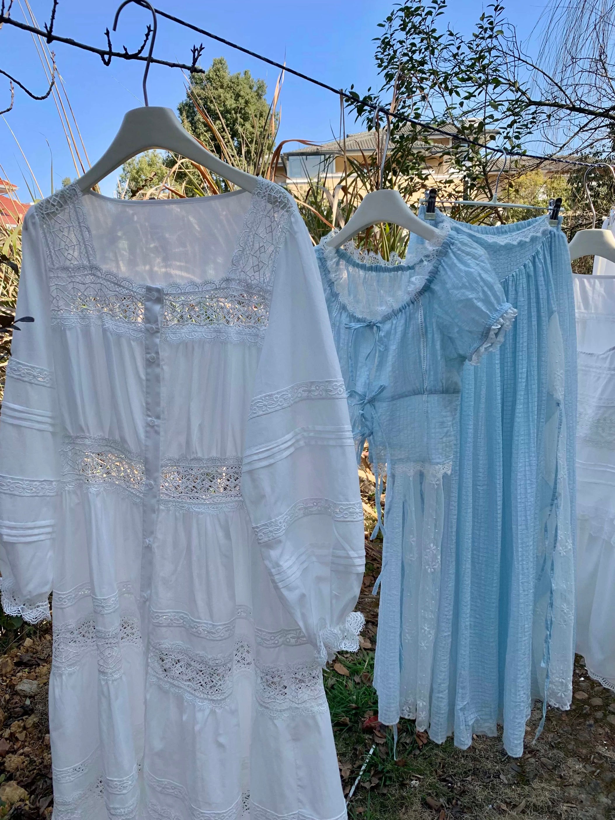 Picture this: it's a rainy day, and you're inside a cozy cottage classroom, sewing to the gentle sound of raindrops. When the rain stops, you hang your creations outside, breathing in the fresh, sweet scent of rain-kissed grass. It's a dreamy escape to nature, where you can live out your ideal countryside life and create the outfits you've always dreamed of. All of this is real, and your clothes are made in this beautiful, enchanting atmosphere.🌿🌙🪽🌷