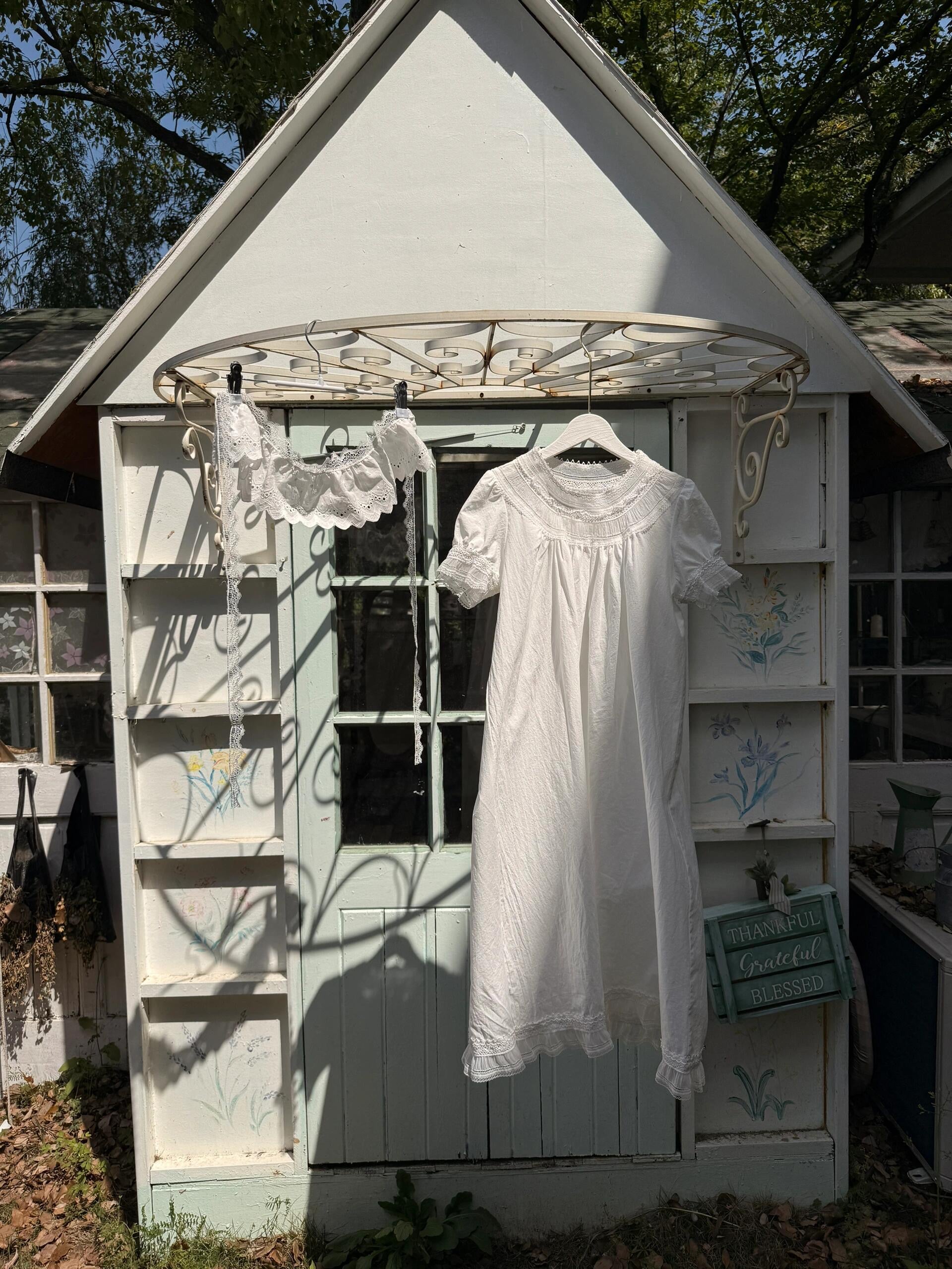 Picture this: it's a rainy day, and you're inside a cozy cottage classroom, sewing to the gentle sound of raindrops. When the rain stops, you hang your creations outside, breathing in the fresh, sweet scent of rain-kissed grass. It's a dreamy escape to nature, where you can live out your ideal countryside life and create the outfits you've always dreamed of. All of this is real, and your clothes are made in this beautiful, enchanting atmosphere.🌿🌙🪽🌷