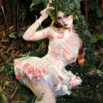 The multi-layered, ruffled hem naturally enhances the skirt’s fullness, giving it a distinct, atmospheric flair. Adorning the hem are 60 handcrafted flowers in various colors, with soft champagne pink tones that harmonize beautifully. As you move, the delicate blooms sway, like a garden in full bloom, transforming you into the goddess of spring, heralding new life and vitality.
