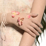 Adorned with warm-toned floral embellishments, the bold color contrasts create a dynamic and playful energy that remains harmoniously balanced.