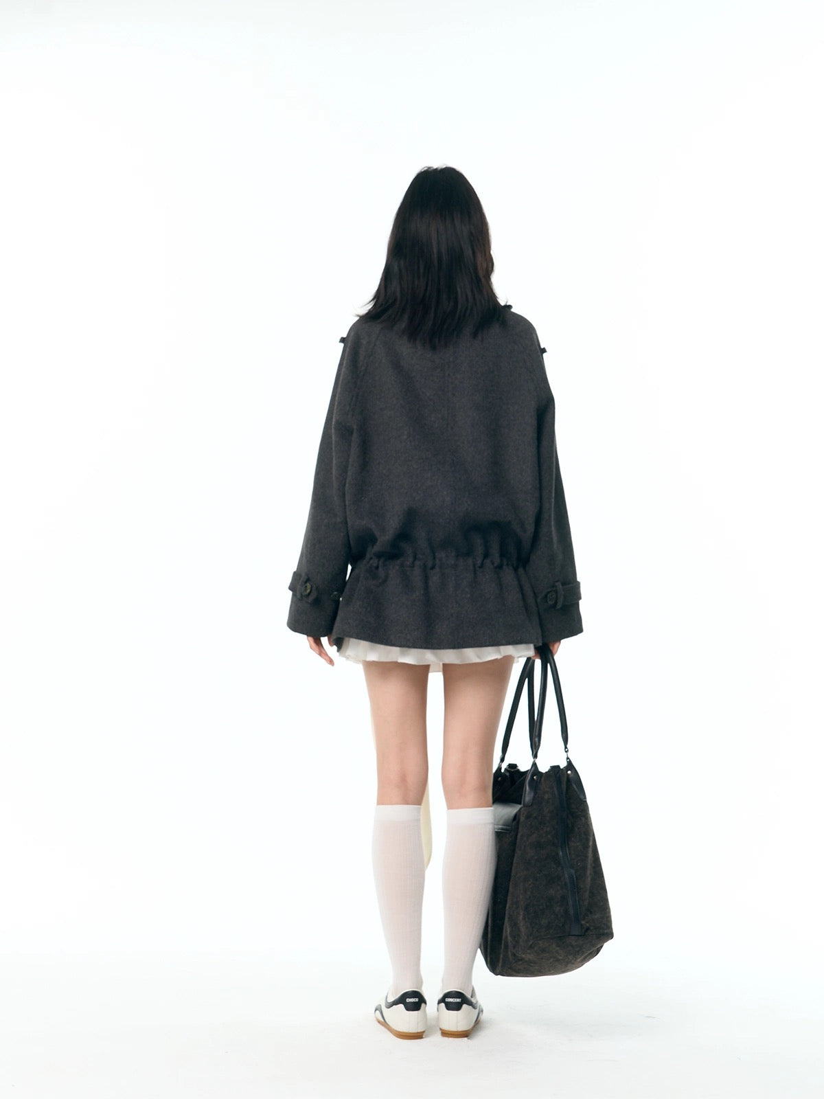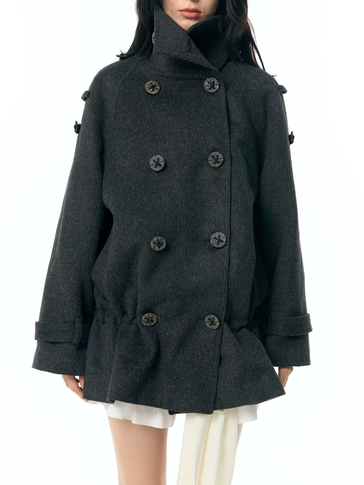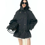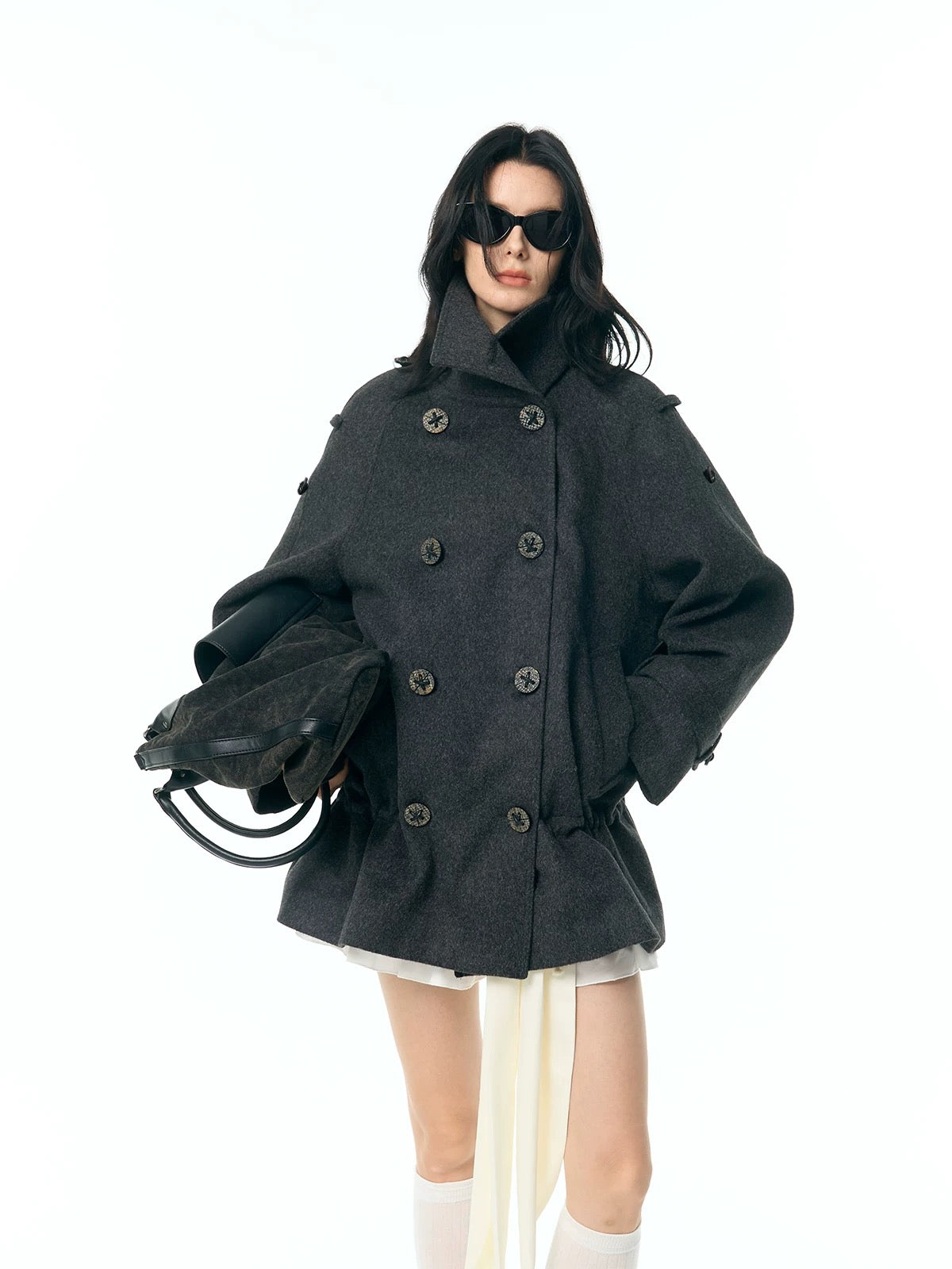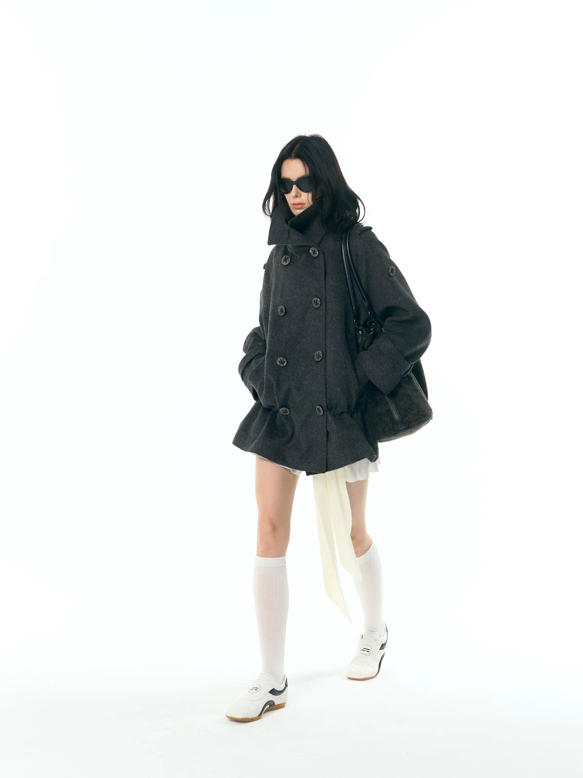 The Heiress Charm Wool Coat is a luxurious statement piece crafted for autumn and winter days, infused with a subtle British-inspired elegance. Designed in a refined black-charcoal hue, this coat features a cinched waist and flared hemline that flatters the silhouette with a touch of aristocratic charm.