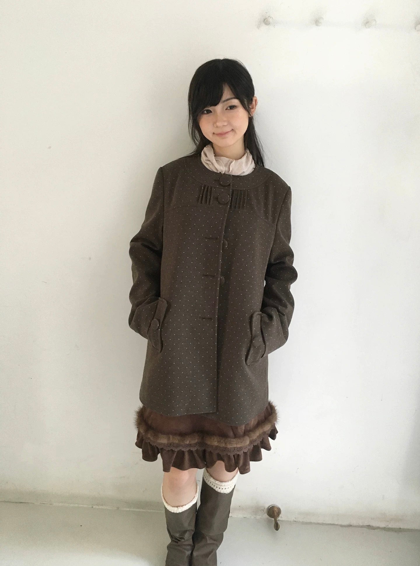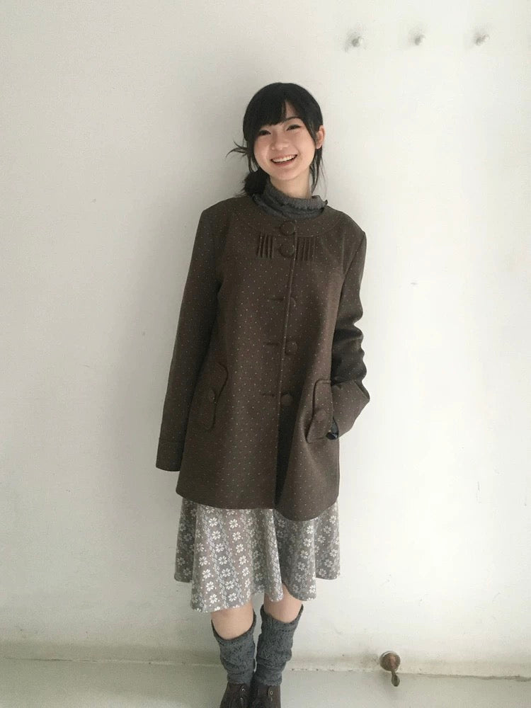 A sweet vintage touch wrapped in autumn warmth — this mid-length mori-kei style coat features a deep coffee-brown autumn color.