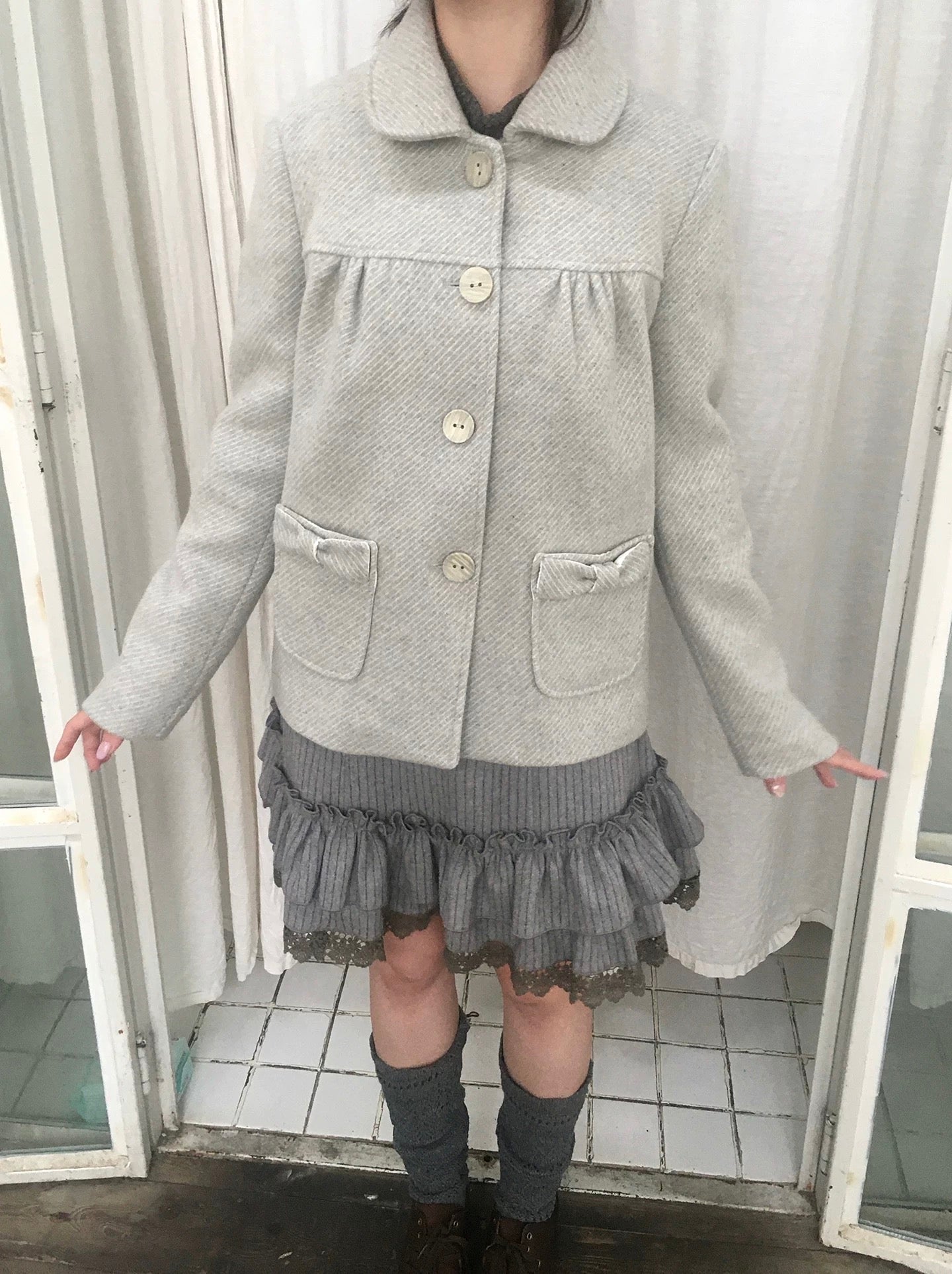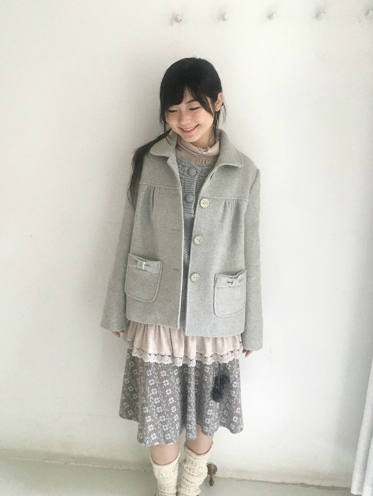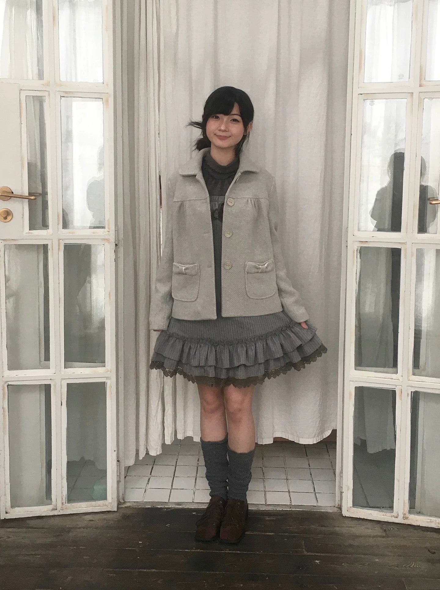 Its soft herringbone texture and neat tailoring bring quiet elegance to daily mori-kei looks, easily paired with lace skirts or knit dresses.