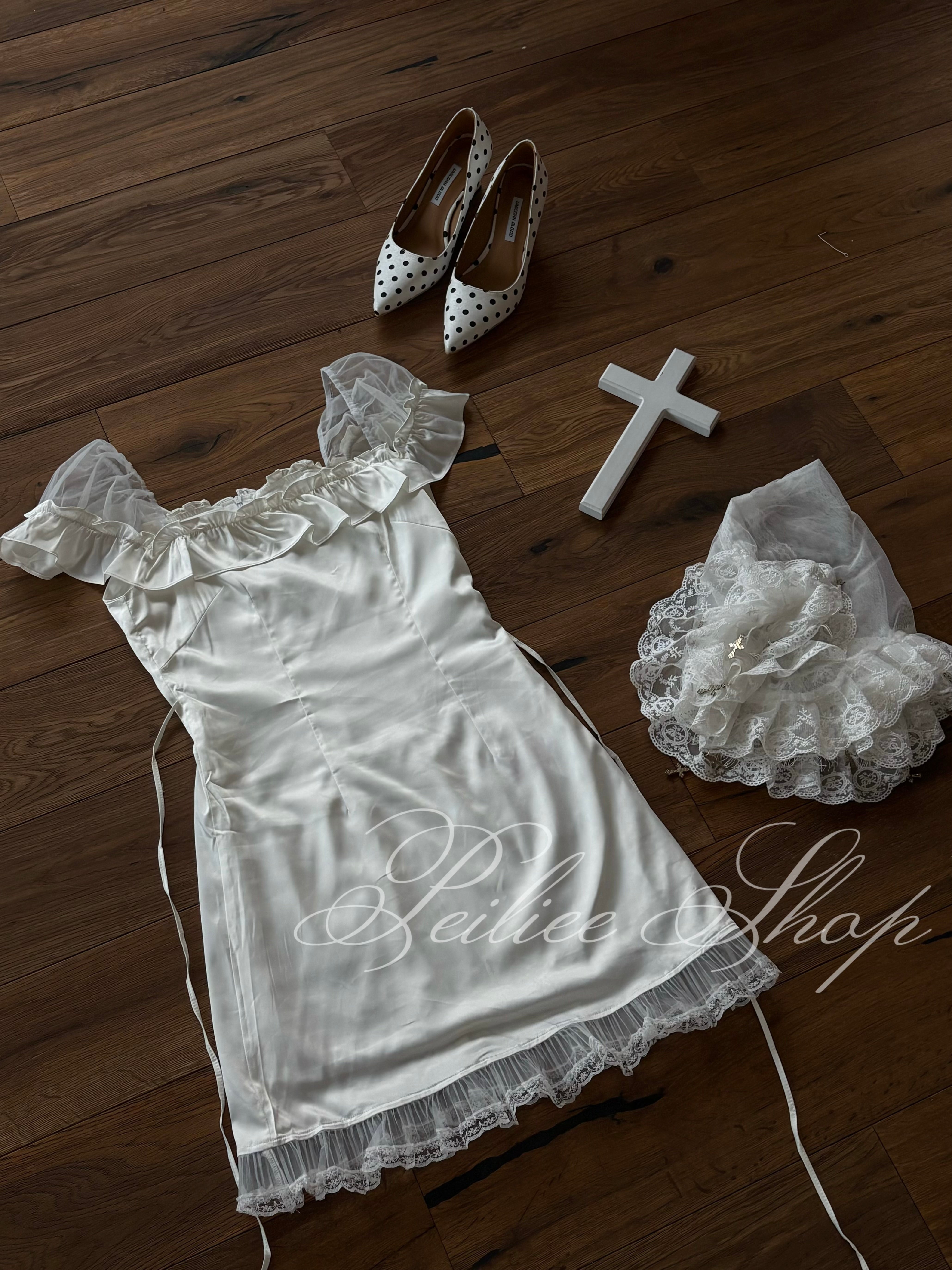 🤍Coquette-Inspired Design: Featuring an off-the-shoulder neckline, lace-trimmed details, and a figure-flattering silhouette, this dress is perfect for those who love vintage femininity with a sultry twist.