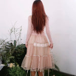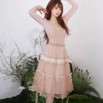 不規則にドレープされたレースは、まだ編みかけられているかのように、未完成で夢見心地な雰囲気を醸し出し、フェアリーコアの幻想的な世界観とコケットコアの優雅さを融合させています。