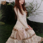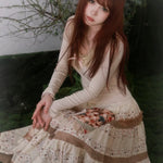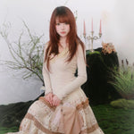 不規則にドレープされたレースは、まだ編みかけられているかのように、未完成で夢見心地な雰囲気を醸し出し、フェアリーコアの幻想的な世界観とコケットコアの優雅さを融合させています。