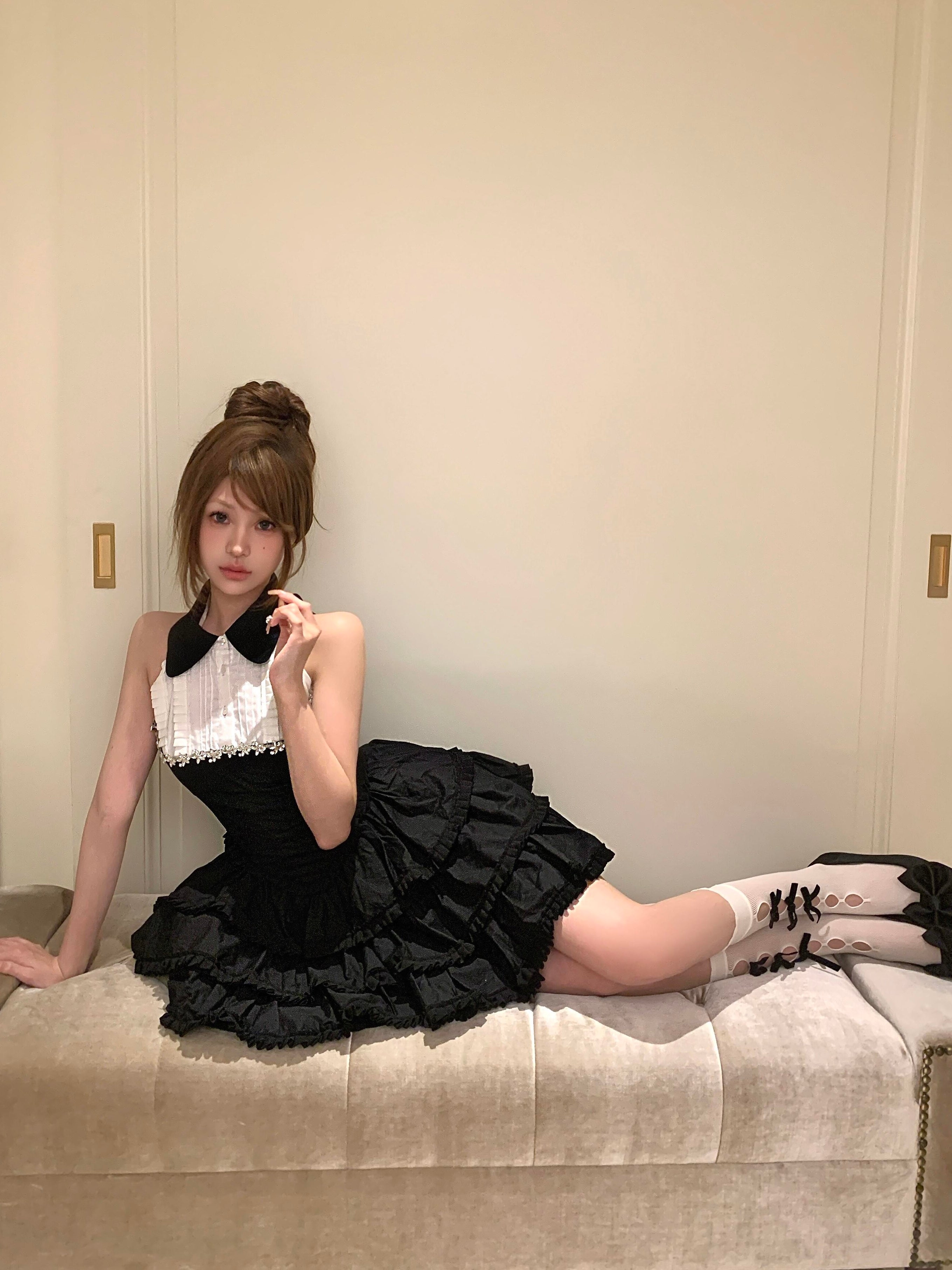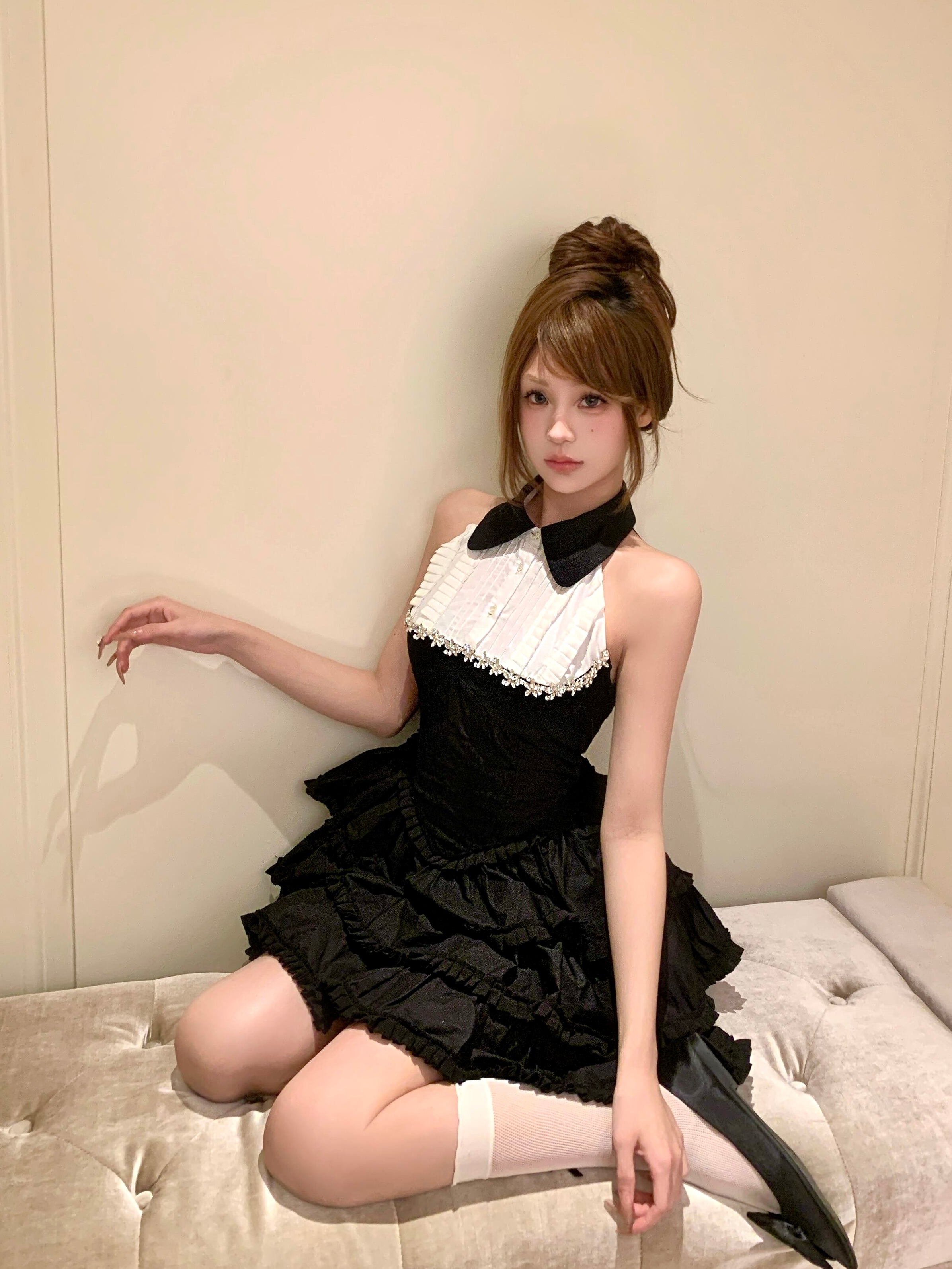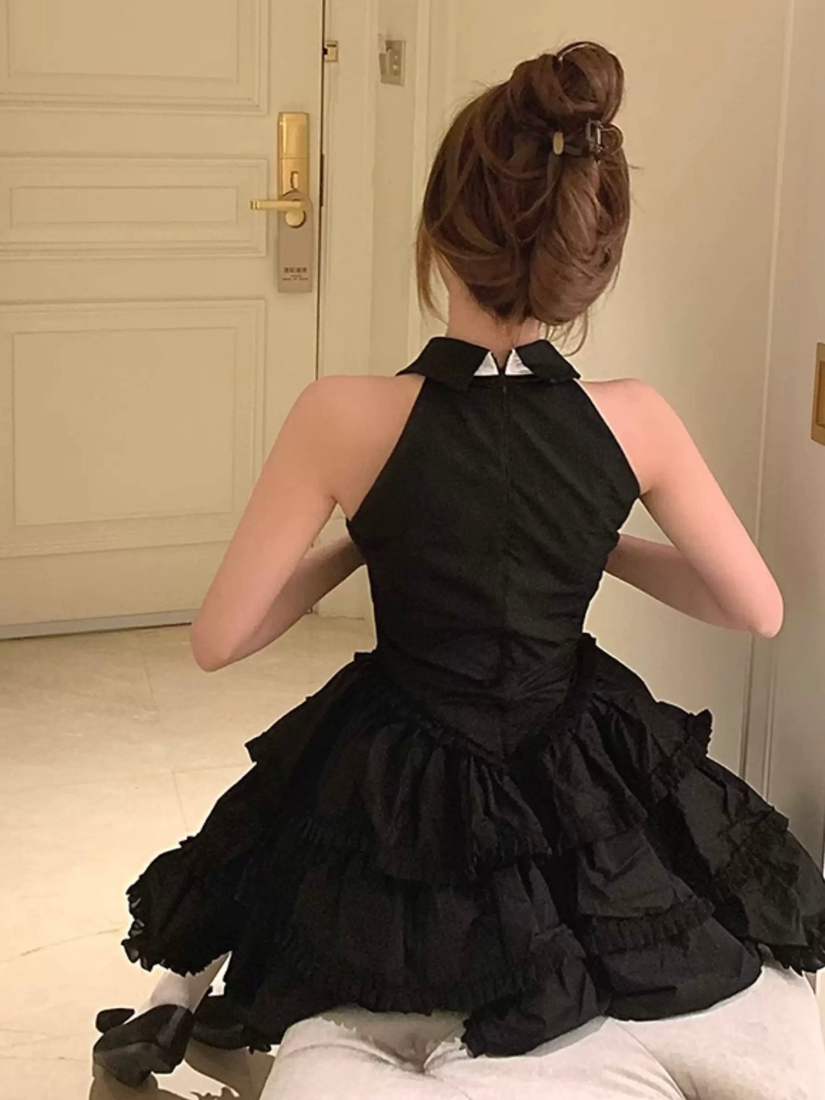 Leonie Girl Noir & Blanc Rêverie Halter Neck Dress