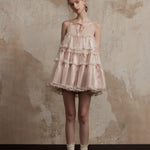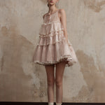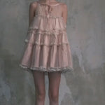 A dreamy, fairytale-inspired dress that flows like a delicate melody, reminiscent of an enchanted ballet performance. Featuring soft layers of shimmering tulle, elegant lace trims, and a romantic ribbon tie, this dress is perfect for those who love a touch of magic in their wardrobe.