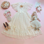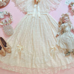 Indulge in the dreamy elegance of Japanese Lolita fashion with the ‘Lily in the Valley’ Vintage-Inspired One-Piece Dress by Le Flacon. Meticulously handmade with delicate lace and intricate floral details, this enchanting one-piece embodies the essence of classic Lolita charm. Its flowy silhouette and vintage-inspired design make it perfect for Lolita tea parties, special occasions like wedding or anyone who adores whimsical, fairy-tale aesthetics.