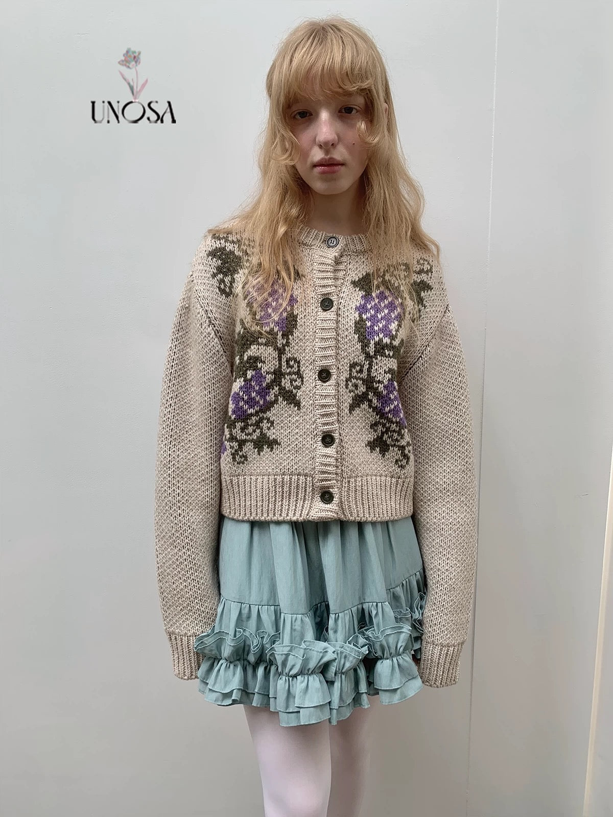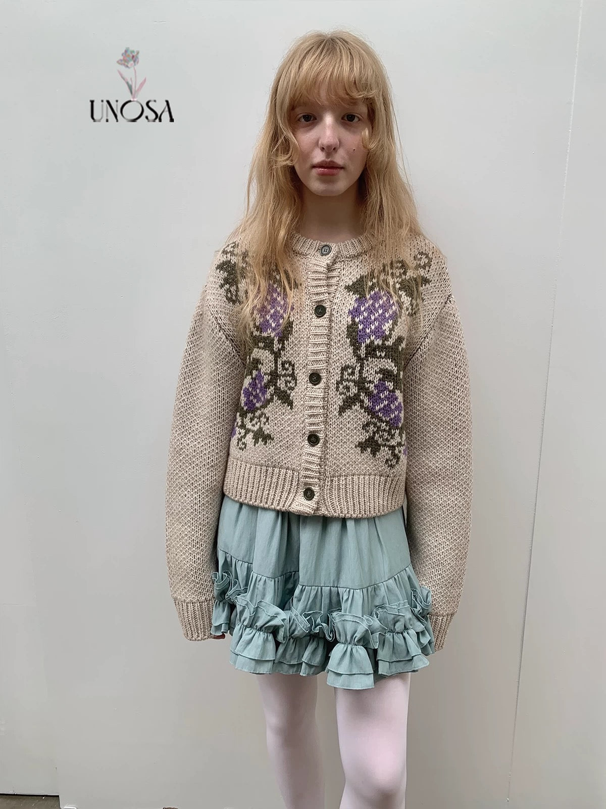 UNOSA Autumn Vineyard Grapes Wool Cardigan