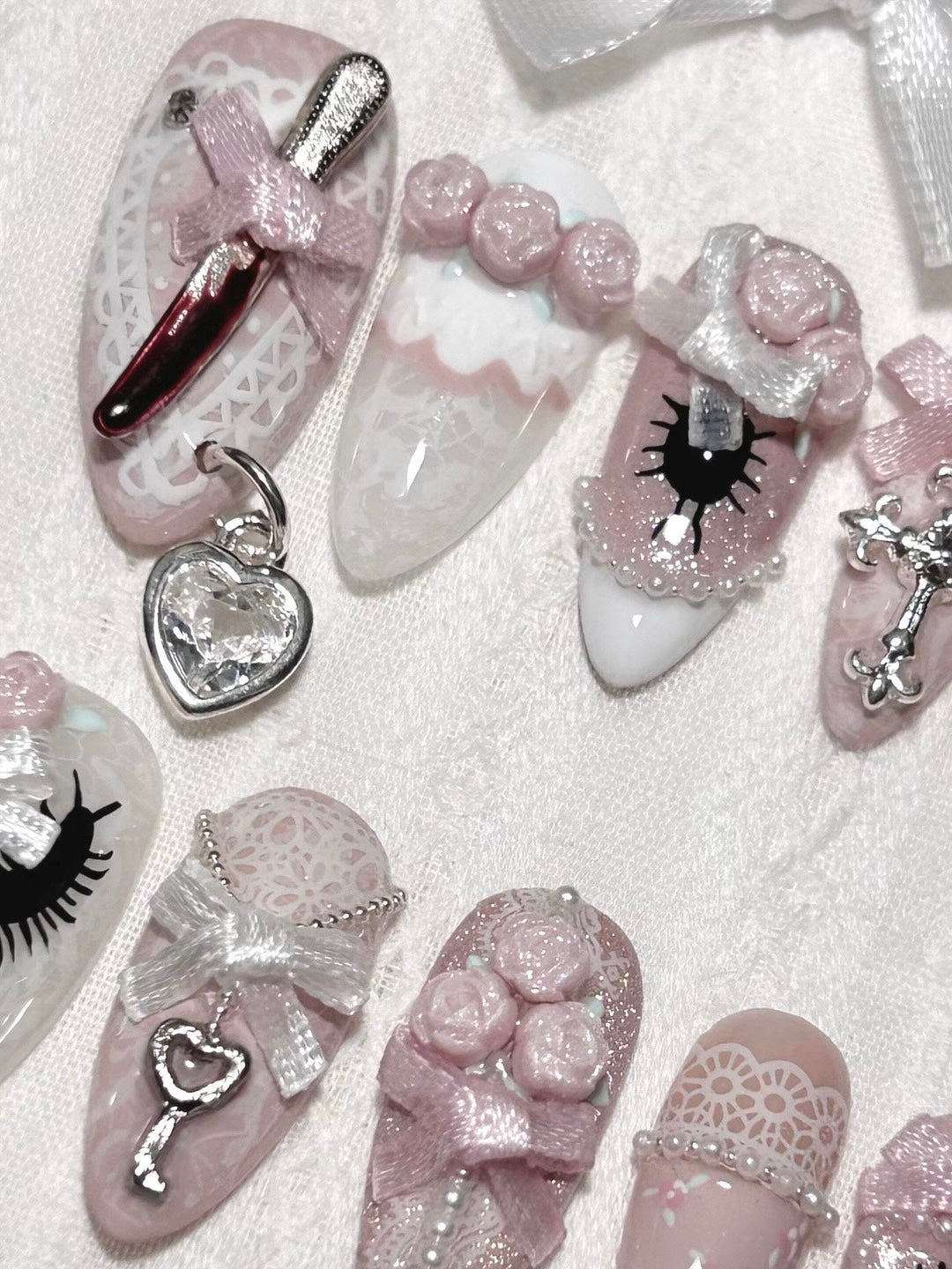 ✨ Perfect for those who love fairycore, coquette, vintage doll vibes — this is art you wear at your fingertips.