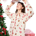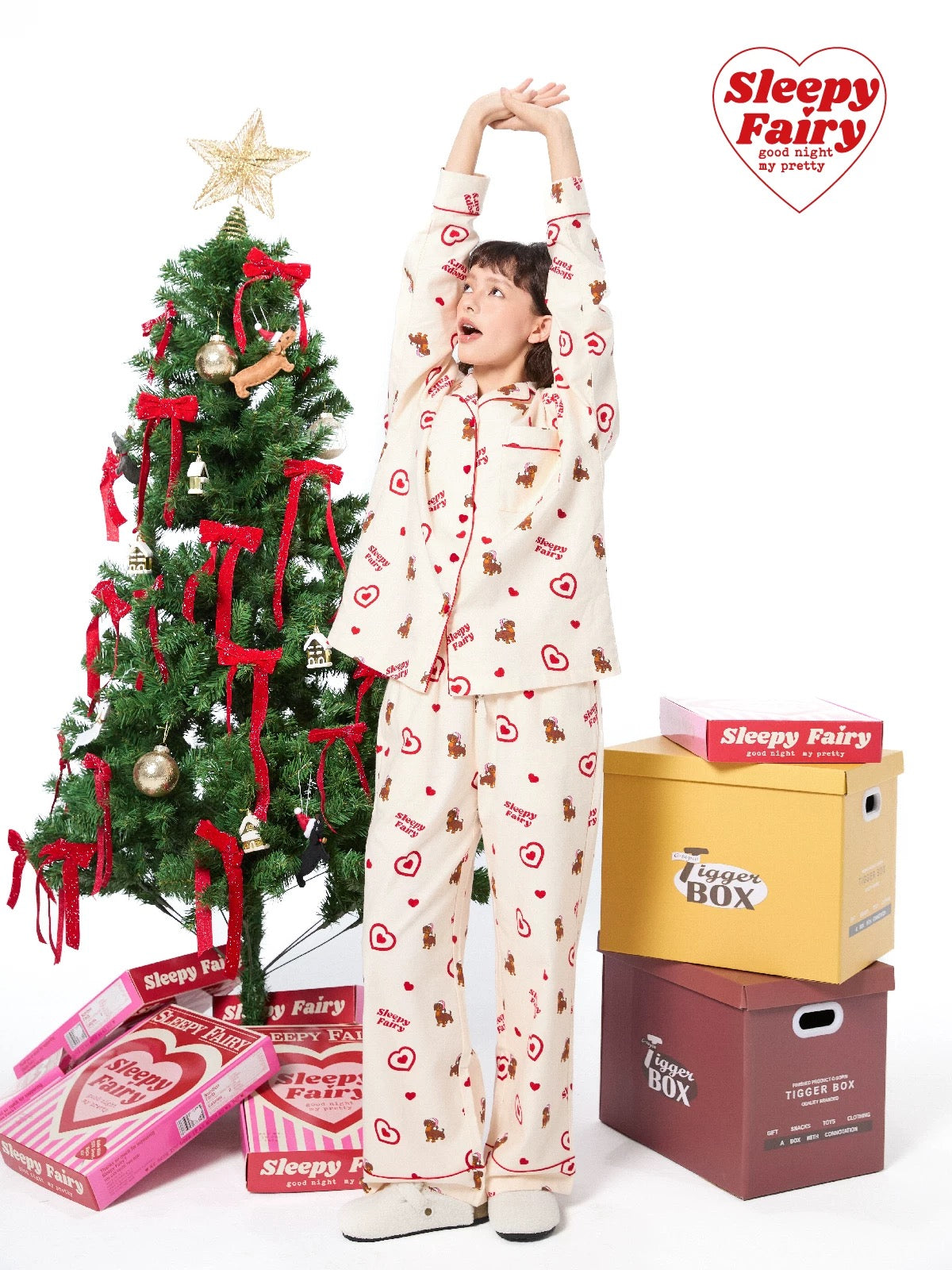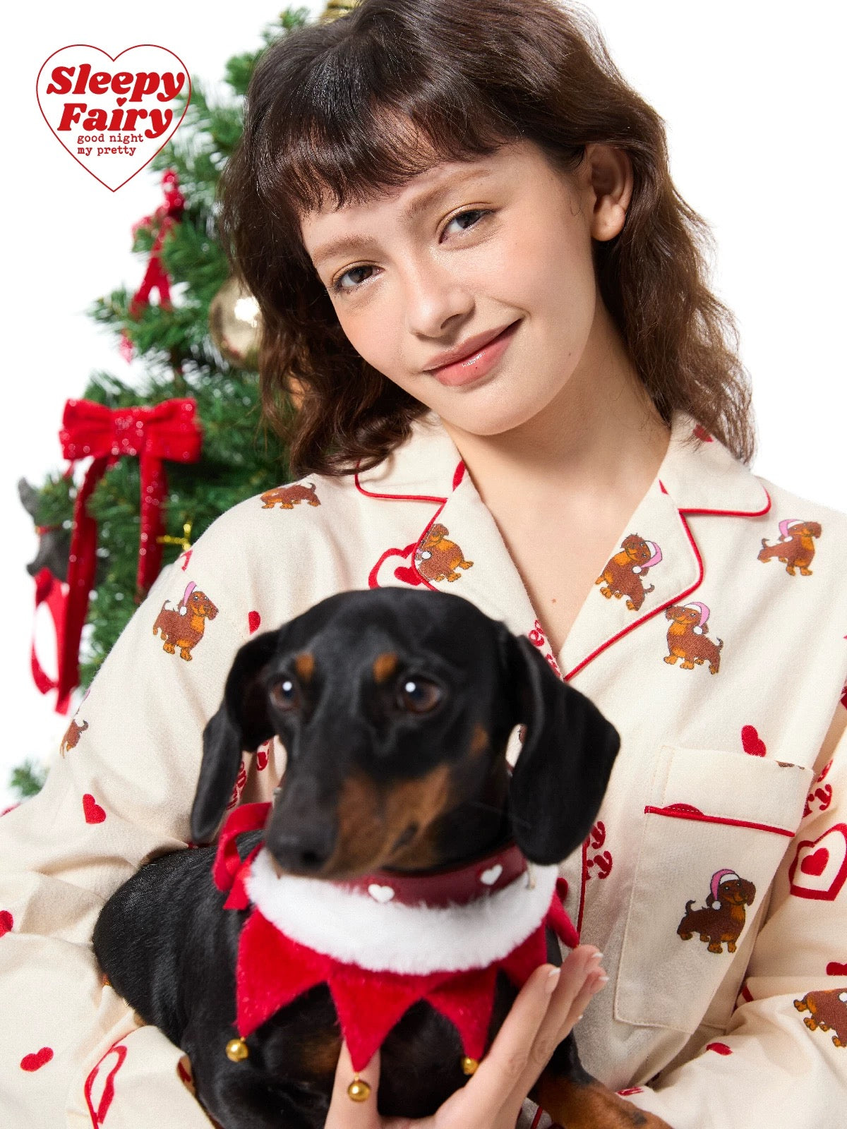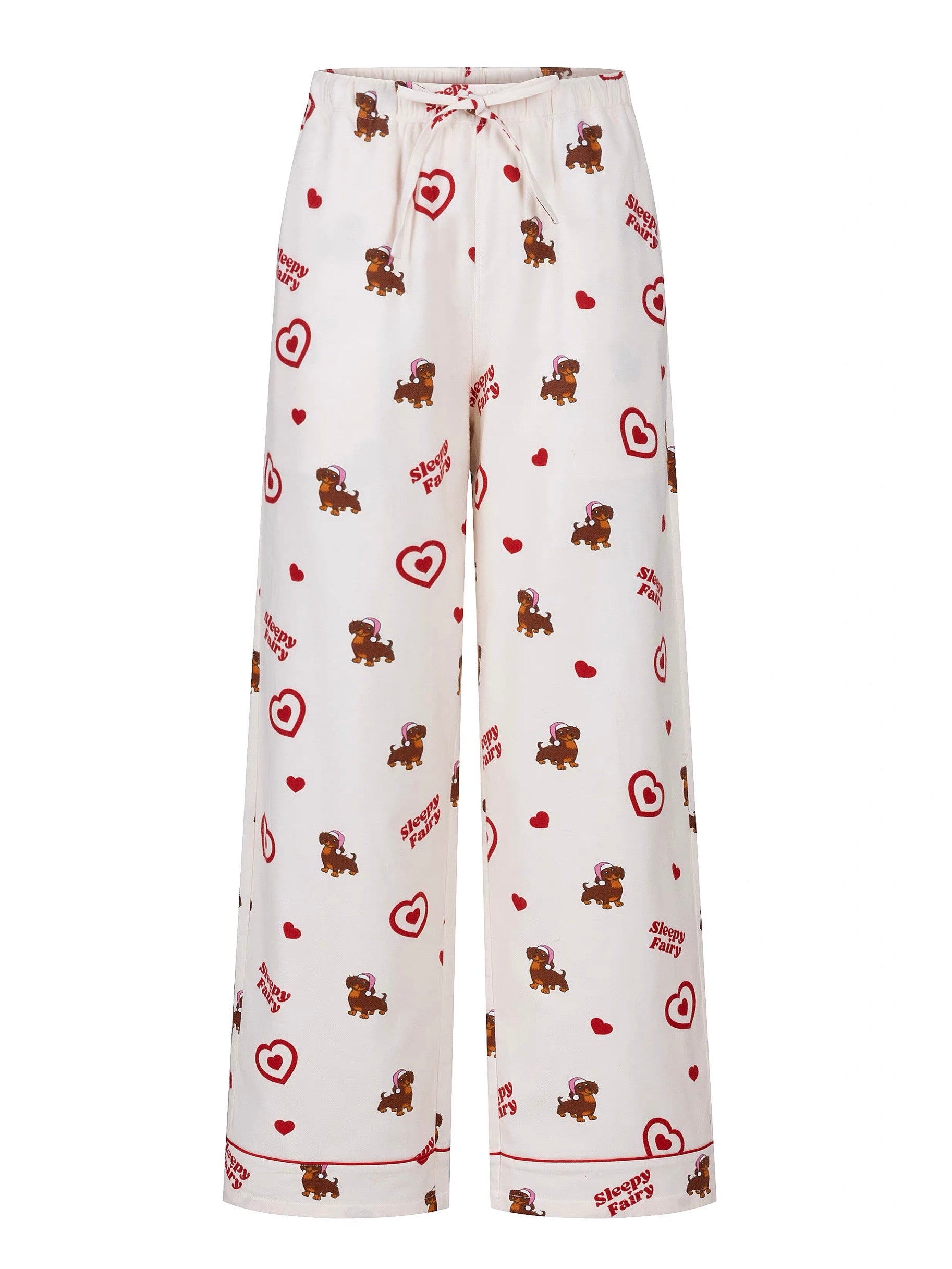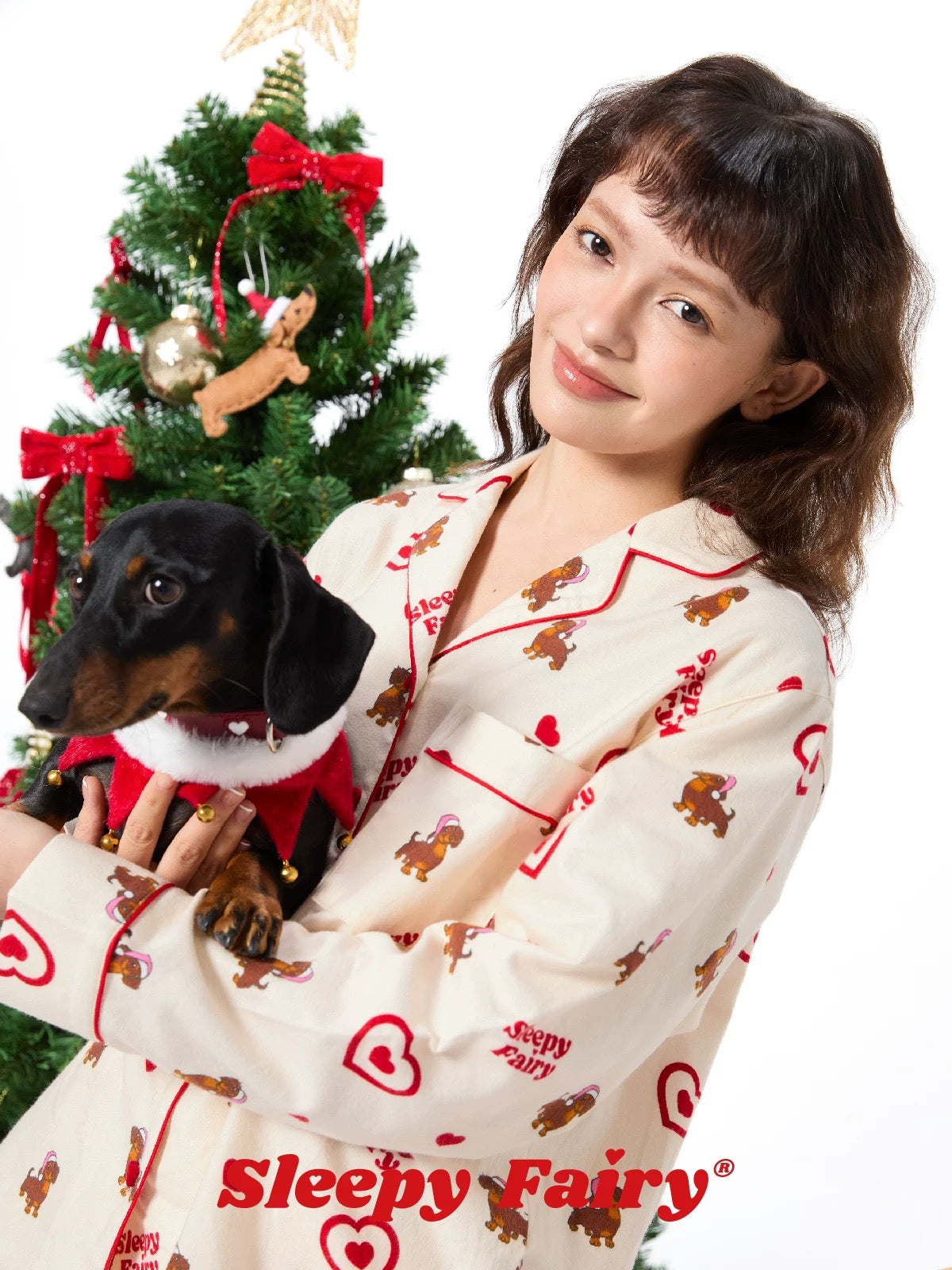A warm and charming be loved holiday season pajama set from Sleepy Fairy, featuring an original dachshund and heart print. Made from pure cotton brushed flannel, this set feels soft, cozy, and gently warm against the skin. Finished with classic piping, a button-up top, and a relaxed fit for everyday comfort.