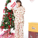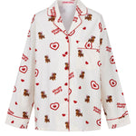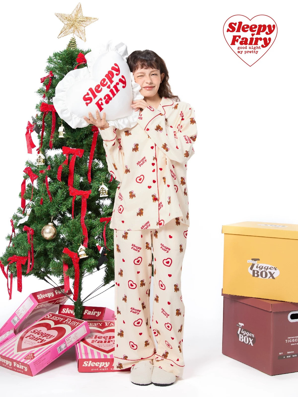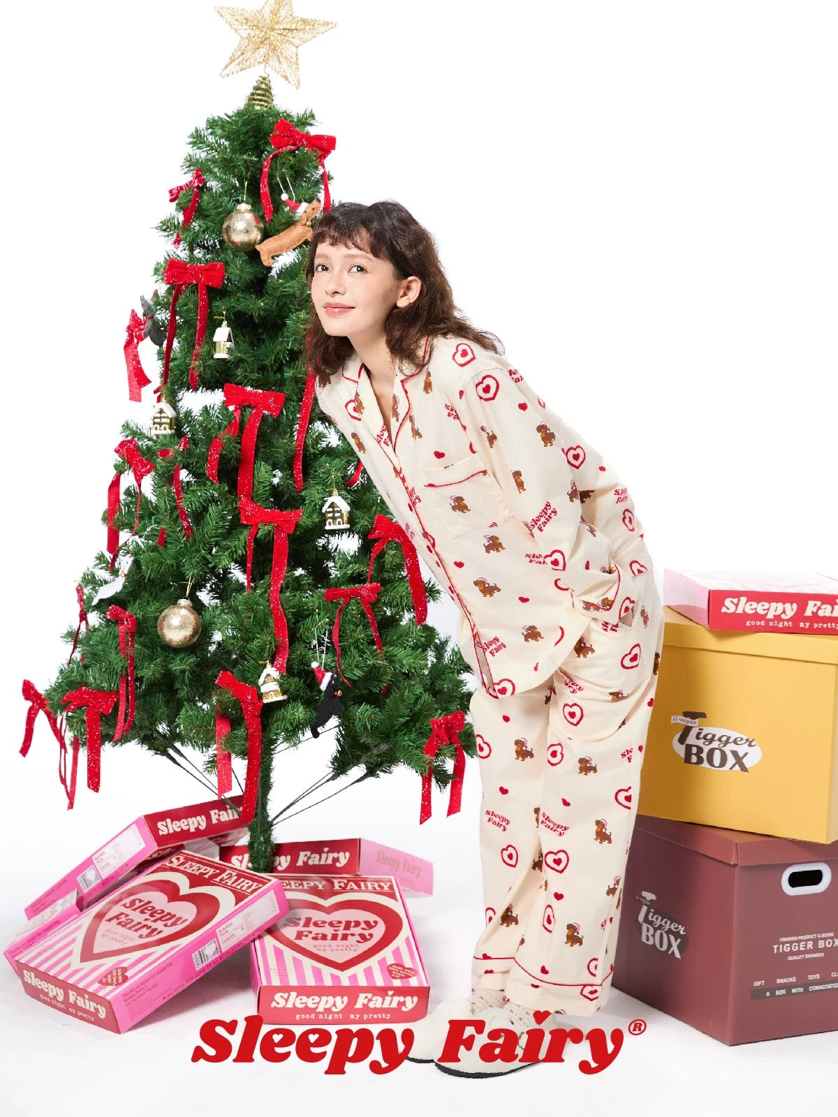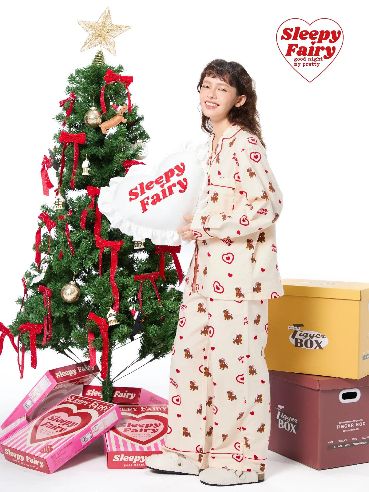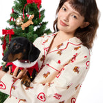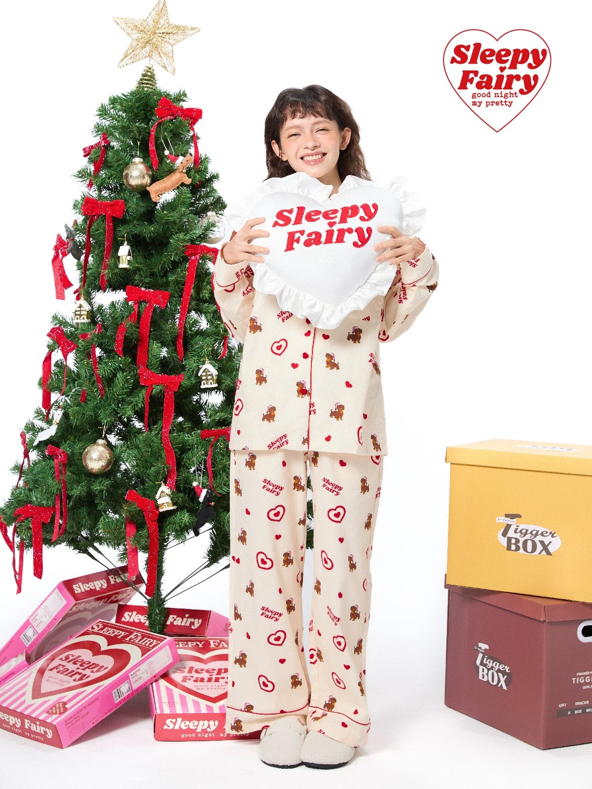 A warm and charming be loved holiday season pajama set from Sleepy Fairy, featuring an original dachshund and heart print. Made from pure cotton brushed flannel, this set feels soft, cozy, and gently warm against the skin. Finished with classic piping, a button-up top, and a relaxed fit for everyday comfort.