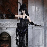 Both armor and elegy, this corset is designed to be worn with the lace cape or on its own as a statement of mourning elegance—half relic, half jewel of the night.