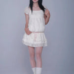 Perfect for warm weather wanders, strawberry picking dates, or lounging like a princess in your bedroom. Pair it with your favorite socks and chunky platforms for the ultimate coquette-core look.🤍