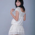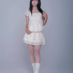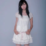 この夏は、まるで夢の雲のようにふわりと漂って。Rose Island(ローズアイランド)から登場したこのミニワンピースは、超ソフトで空気のように軽やか。繊細なレースの質感、ふんわりとしたパフスリーブ、そしてバブルのようなシルエットで、夢の中に生きる女の子にぴったりの一枚です。二重のフリルスカートと、さりげないピンクのリボンが甘くてどこか懐かしい雰囲気をプラス。さらに、こっそり実用的なポケット付き(うれしい!)🌸