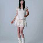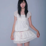 Float through summer like a dreamy cloud in this ultra-soft, fairy-light mini dress by Rose Island. Designed with delicate lace textures, fluffy cap sleeves, and a bubbly silhouette, it’s the perfect piece for girls who live in their daydreams. The double-layered ruffle skirt and dainty pink bow detail add a touch of sweet nostalgia, while the hidden pockets make it secretly practical (yay!) 💗