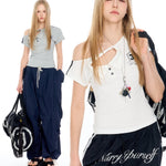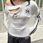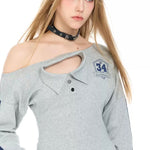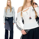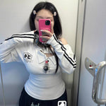 The Sporty Babe Blokette Core Top blends varsity nostalgia with Y2K attitude — featuring an off-shoulder neckline, bold cut-out detail, and contrast stripes that scream main character at practice. The embroidered crest patch adds a retro team-sweetheart charm, while the sculpted fit is made for showing off (on or off the field).
