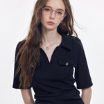 The Hallway Darling Polo Shirt by Reabobo is a sweet-meets-smart staple for every high school muse. Made from a soft ribbed knit, it hugs your waist just right while the V-neckline and flap pockets add a vintage prep-school twist.
