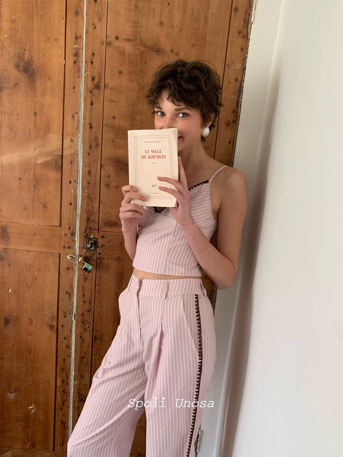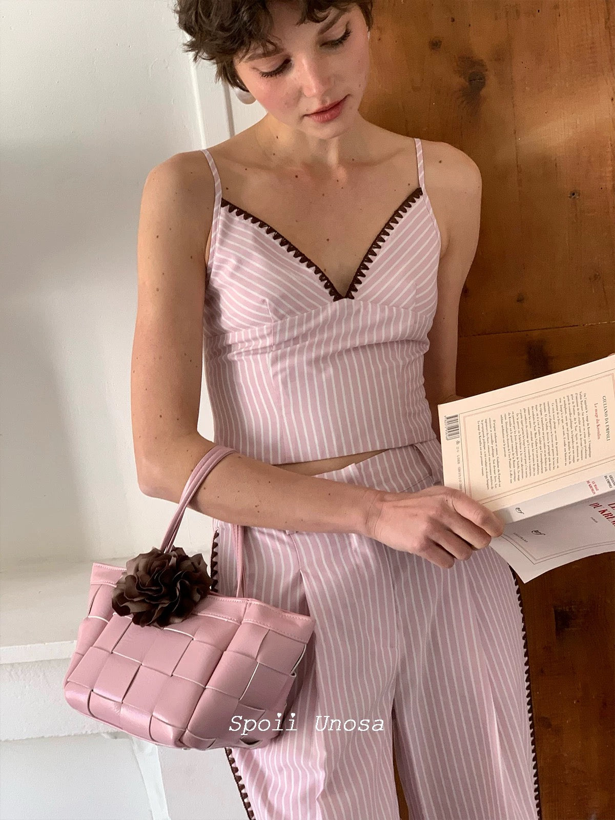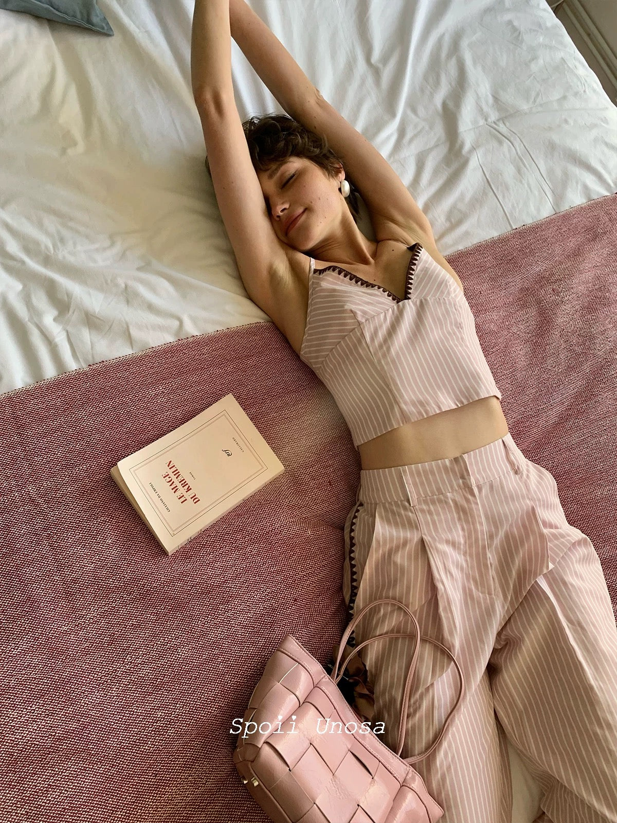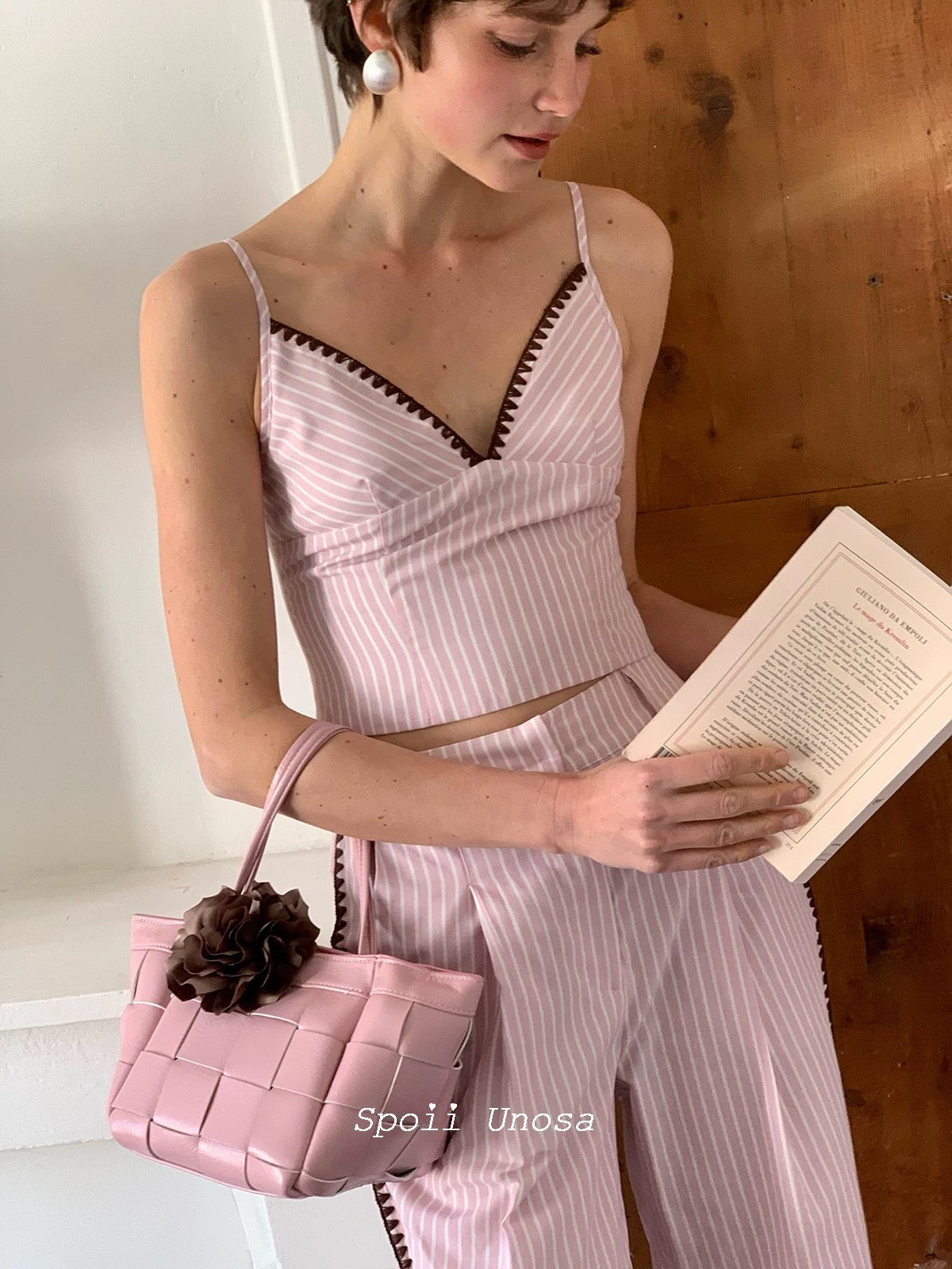 [SPOII UNOSA] Élan Parisien Pink Pinstripe Camisole with Matching Suit Trousers