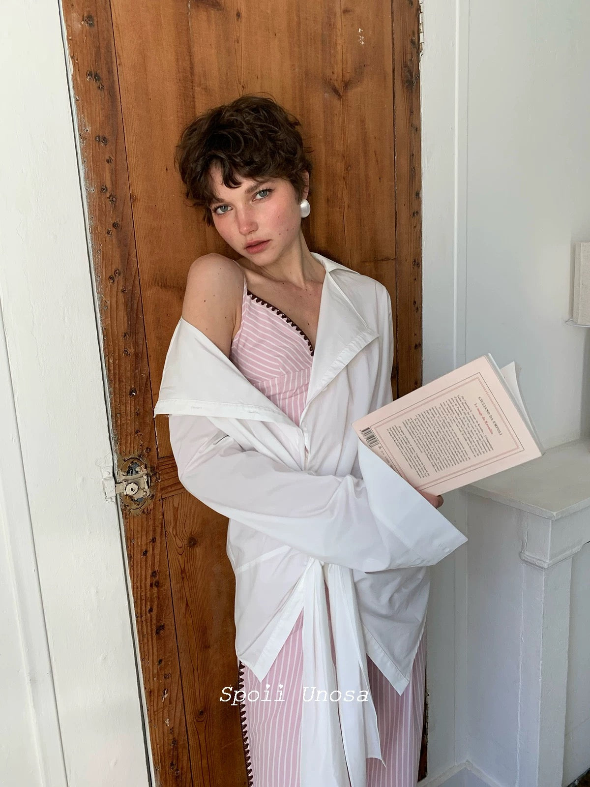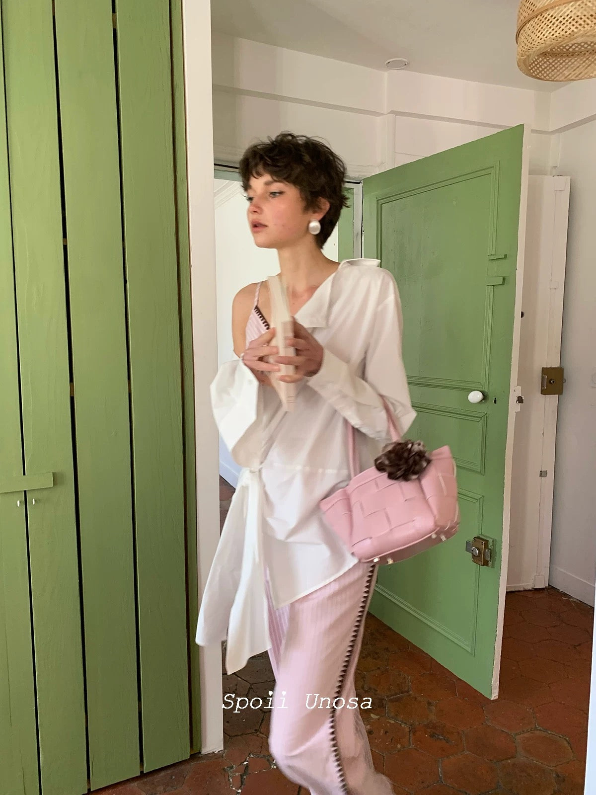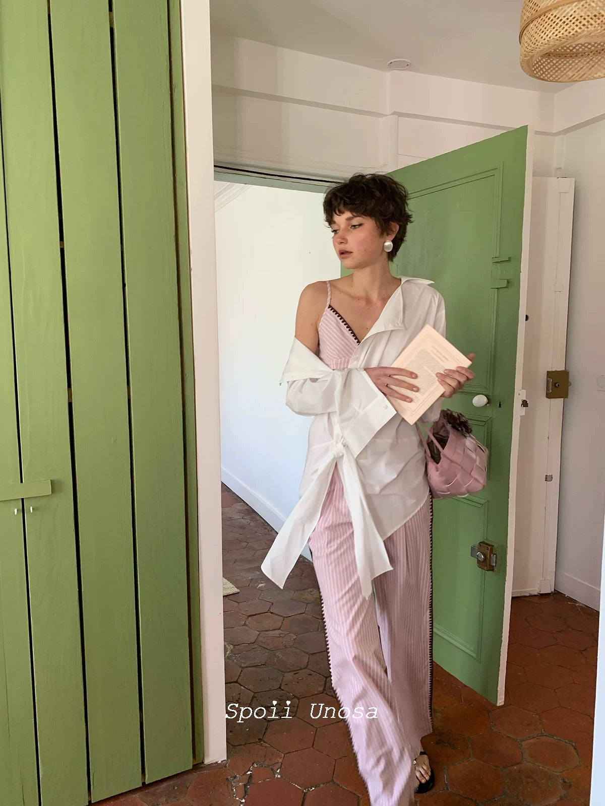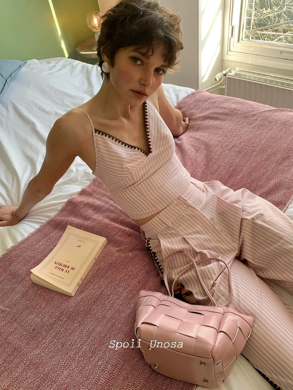 [SPOII UNOSA] Élan Parisien Pink Pinstripe Camisole with Matching Suit Trousers